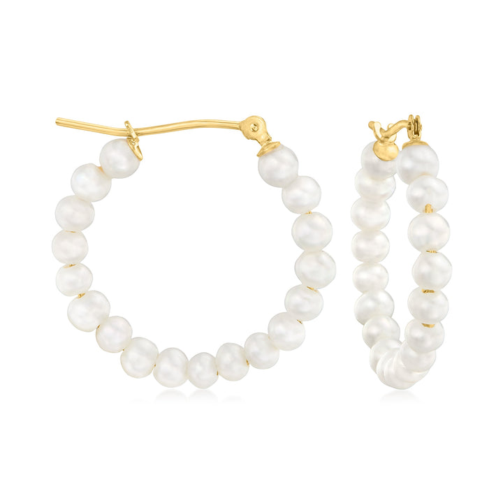 Canaria 3-3.5mm Cultured Pearl Hoop Earrings in 10kt Yellow Gold