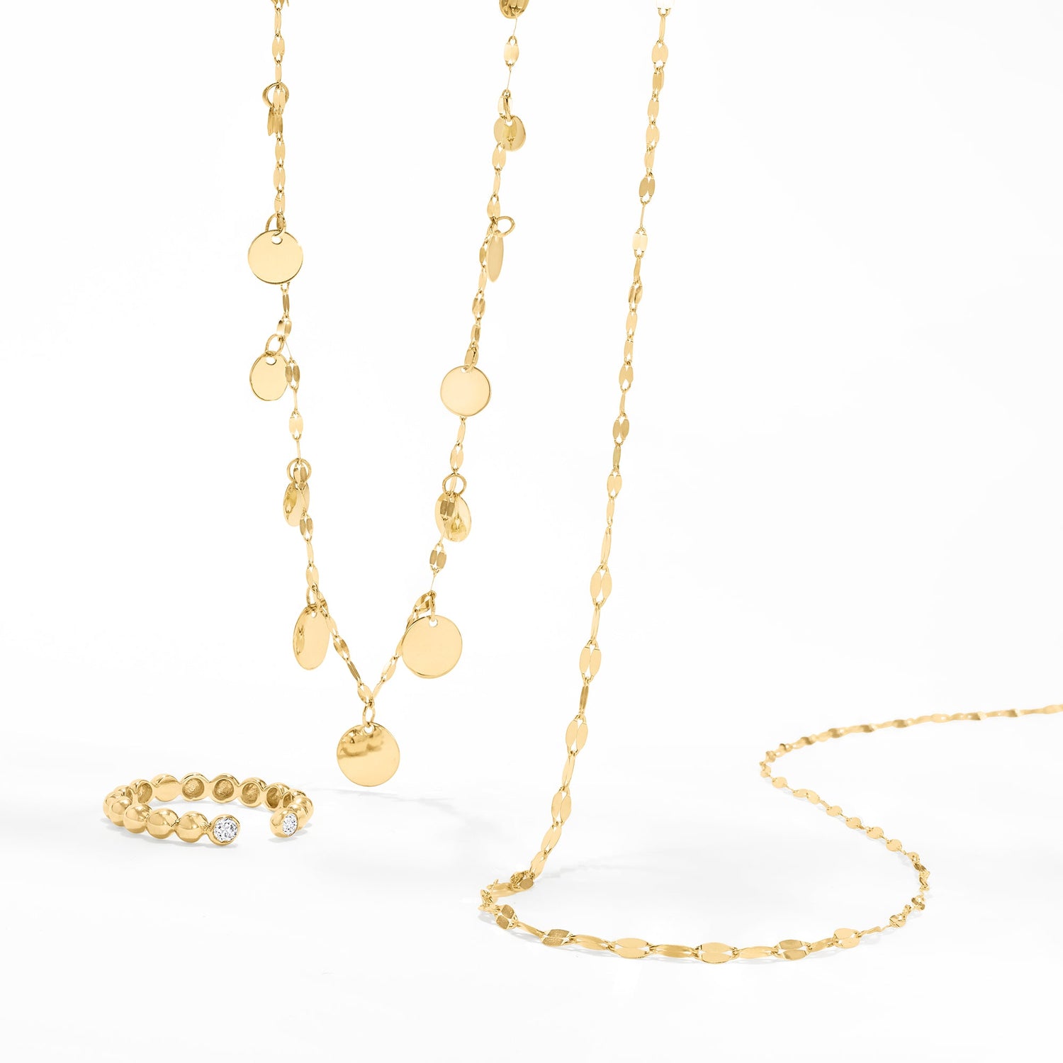 This Canaria Italian 10kt Yellow Gold Graduated Lumachina Chain Necklace is a sophisticated piece that blends classic design with modern elegance. The graduated circles in 10kt yellow gold create a flattering, subtle shine that complements any look. Perfect for layering or wearing alone, this necklace is a timeless addition to any collection.