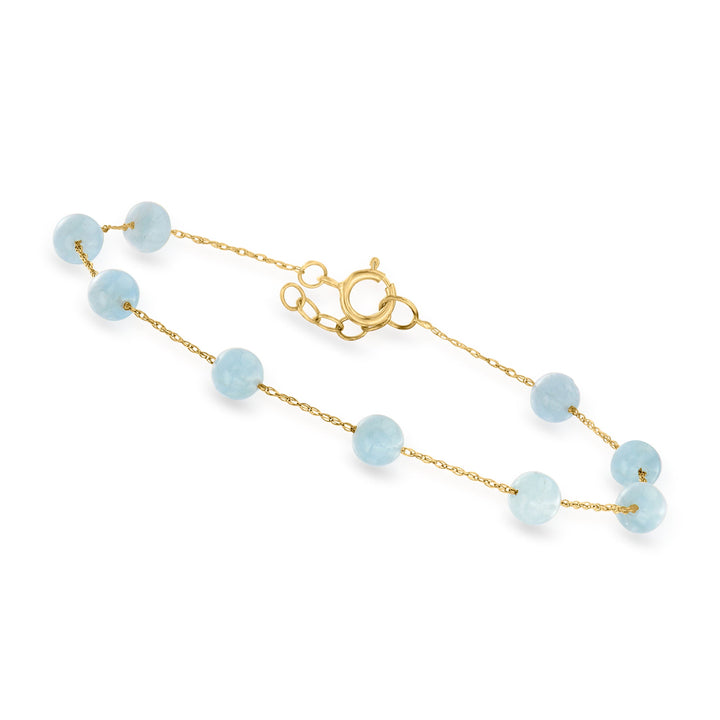Canaria 5.75- Aquamarine Bead Station Bracelet in 10kt Yellow Gold