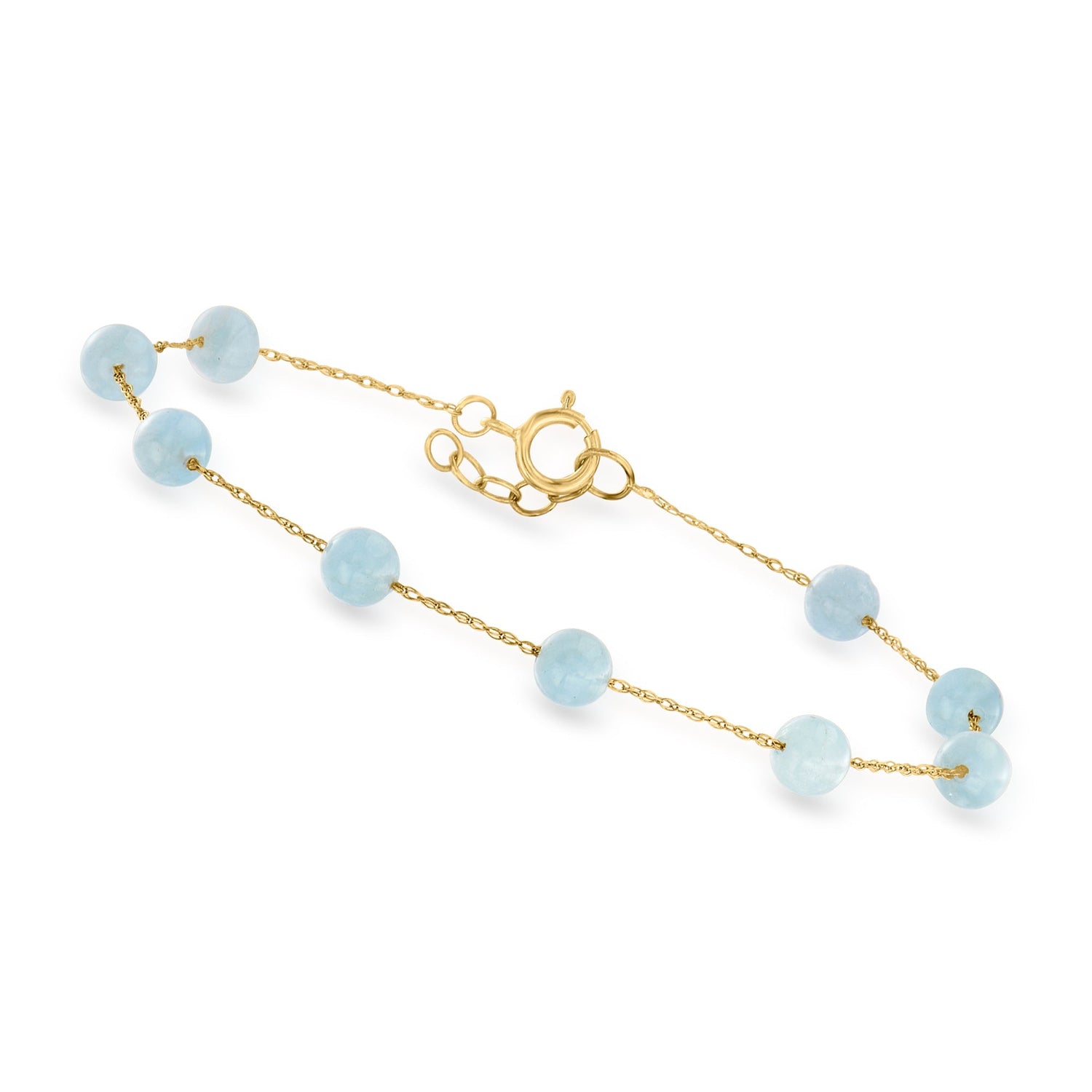 Canaria Fine Jewelry 5.75- Aquamarine Bead Station Bracelet in 10kt Yellow Gold