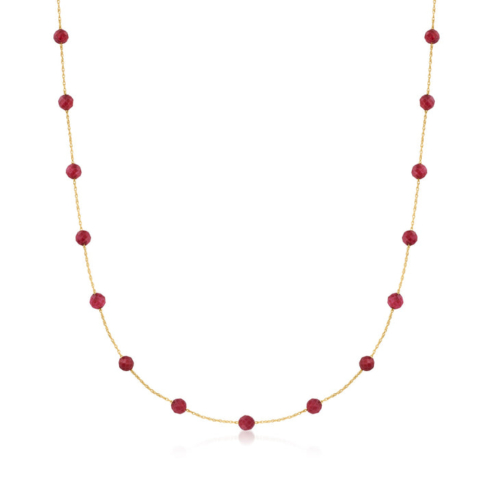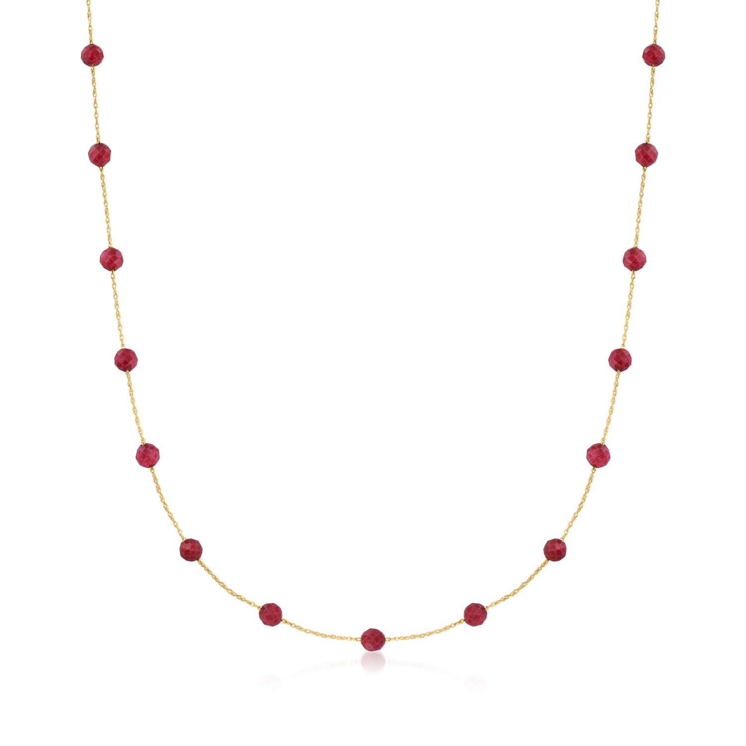 10kt yellow gold. 14.00 ct. t.w. round faceted ruby beads (4-5mm). Rope chain, 18 inches. Spring-ring clasp closure.