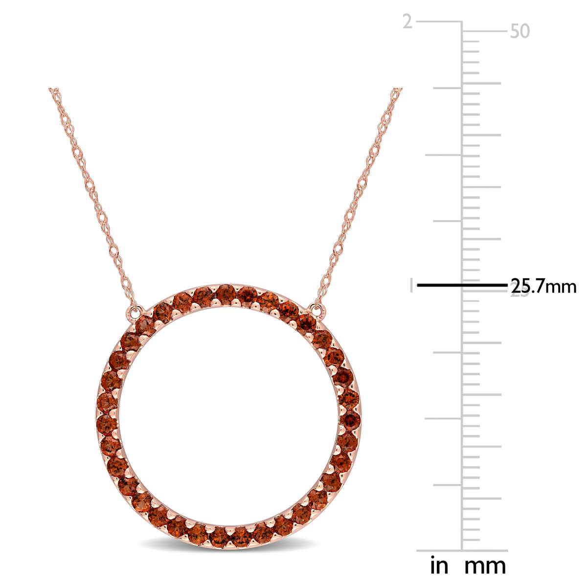 1 3/8 CT TGW Garnet Open Circle Pendant with Chain in 10k Rose Gold