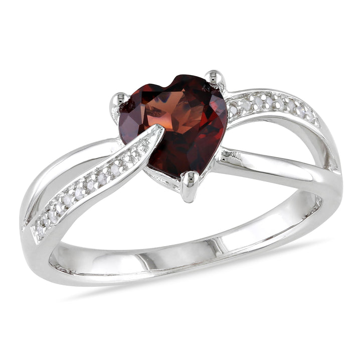 Garnet and Diamond Heart Crossover Ring in Sterling Silver