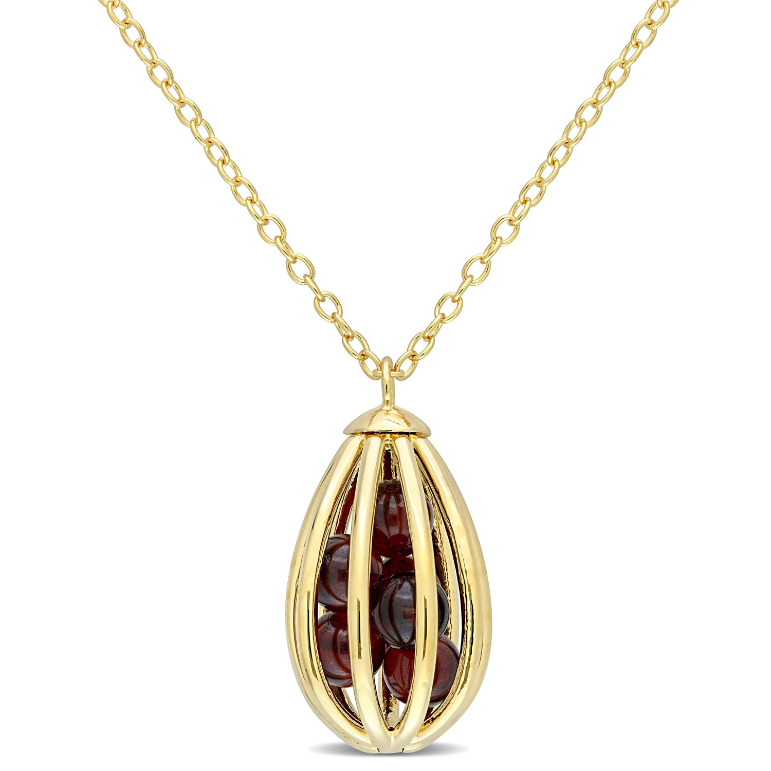 3 5/8 CT TGW Garnet Cage Pendant with Chain in Yellow Plated Sterling Silver