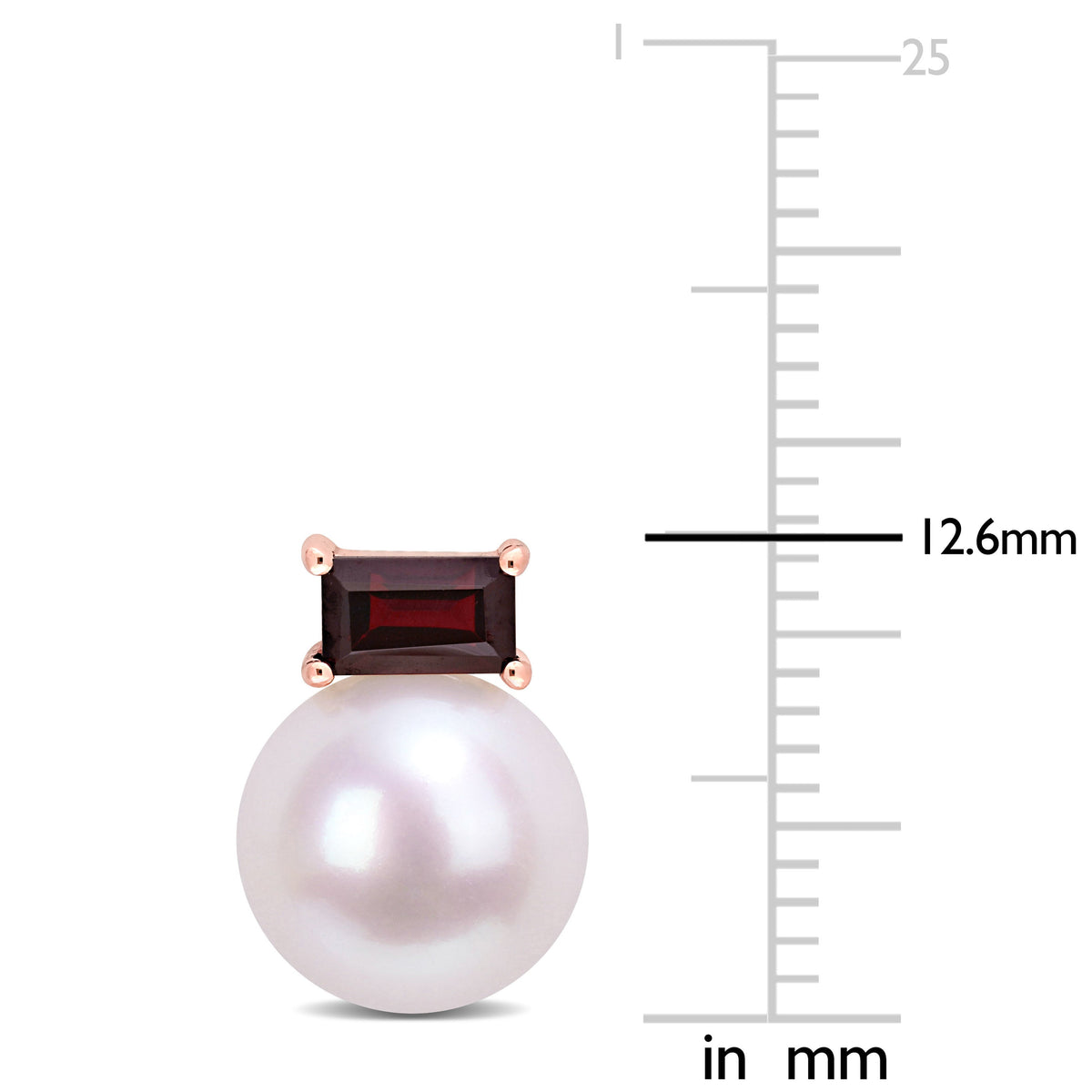 9-9.5mm Cultured Freshwater Pearl and 4/5 CT TGW Garnet Stud Earrings in 10k Rose Gold
