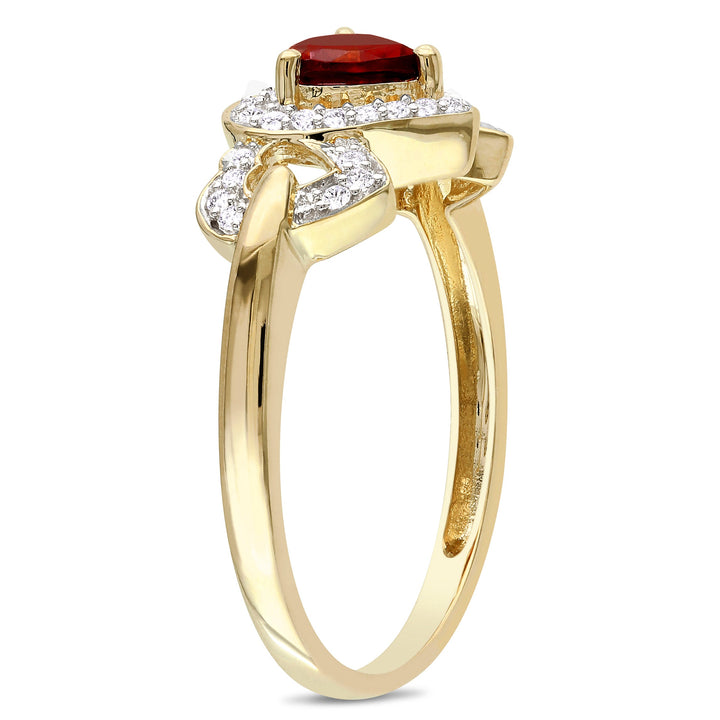Garnet Triple Heart Ring with 1/8 CT TW Diamonds in 10k Yellow Gold
