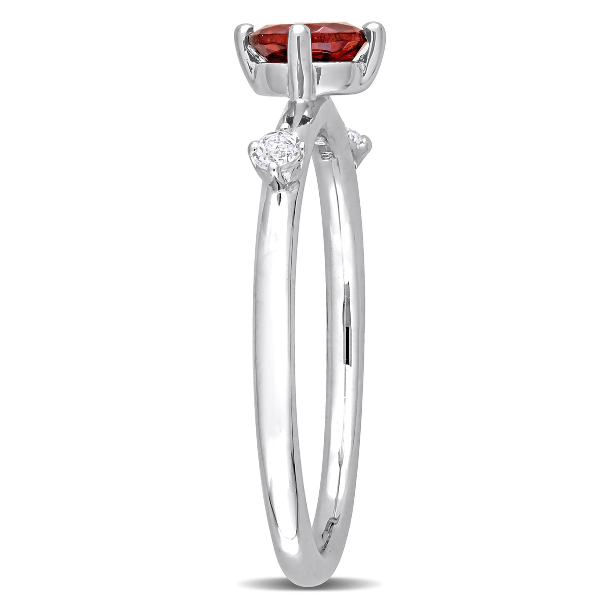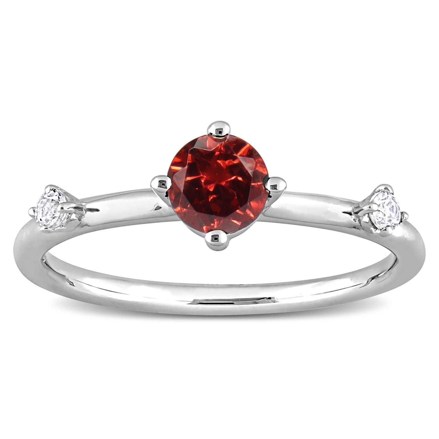 Sterling silver, 3 stones: round-cut garnet (5 x 5mm), white topaz.