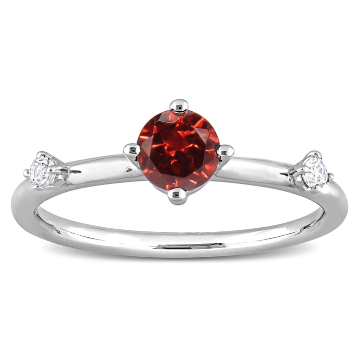 3/4 CT TGW Garnet and White Topaz 3-Stone Ring in Sterling Silver