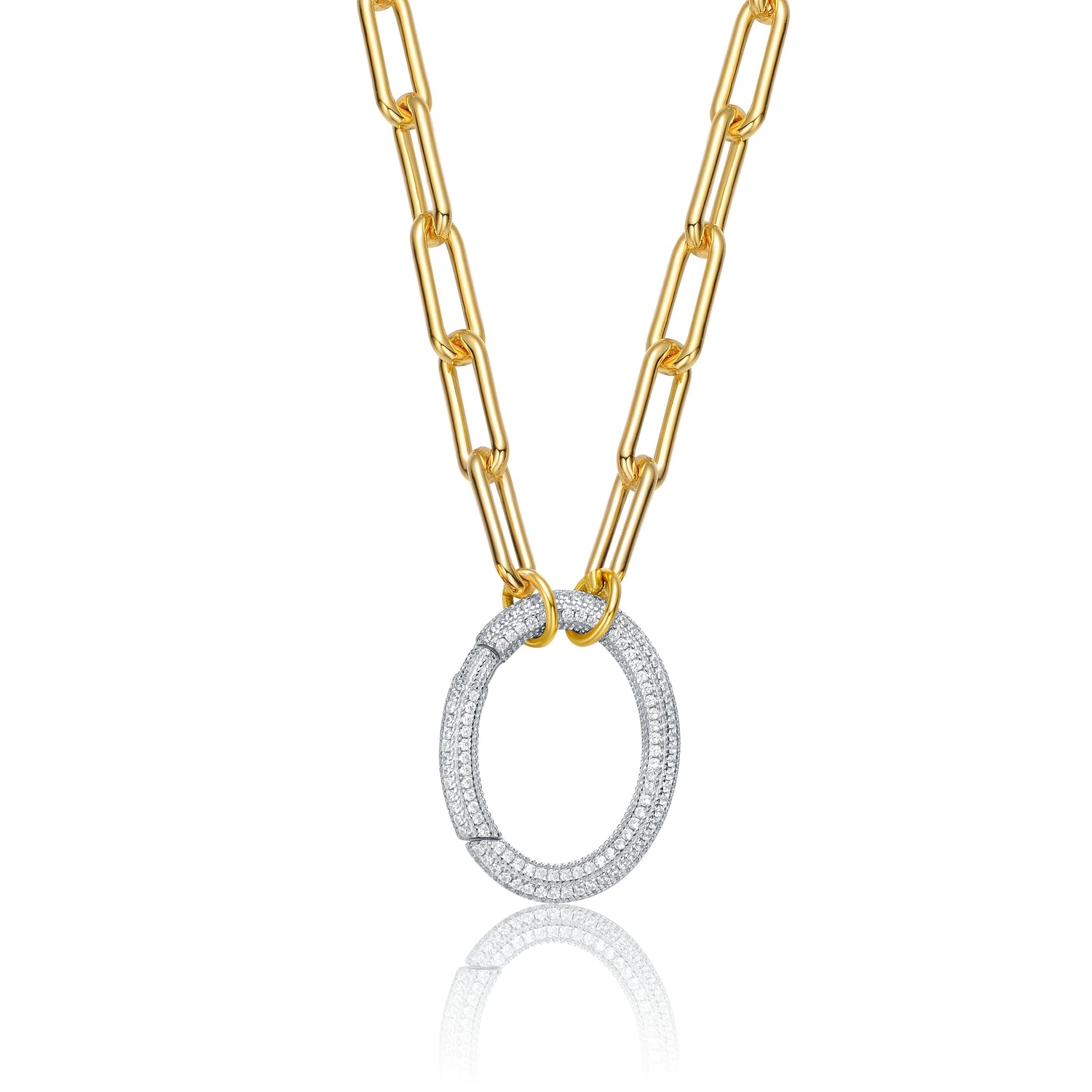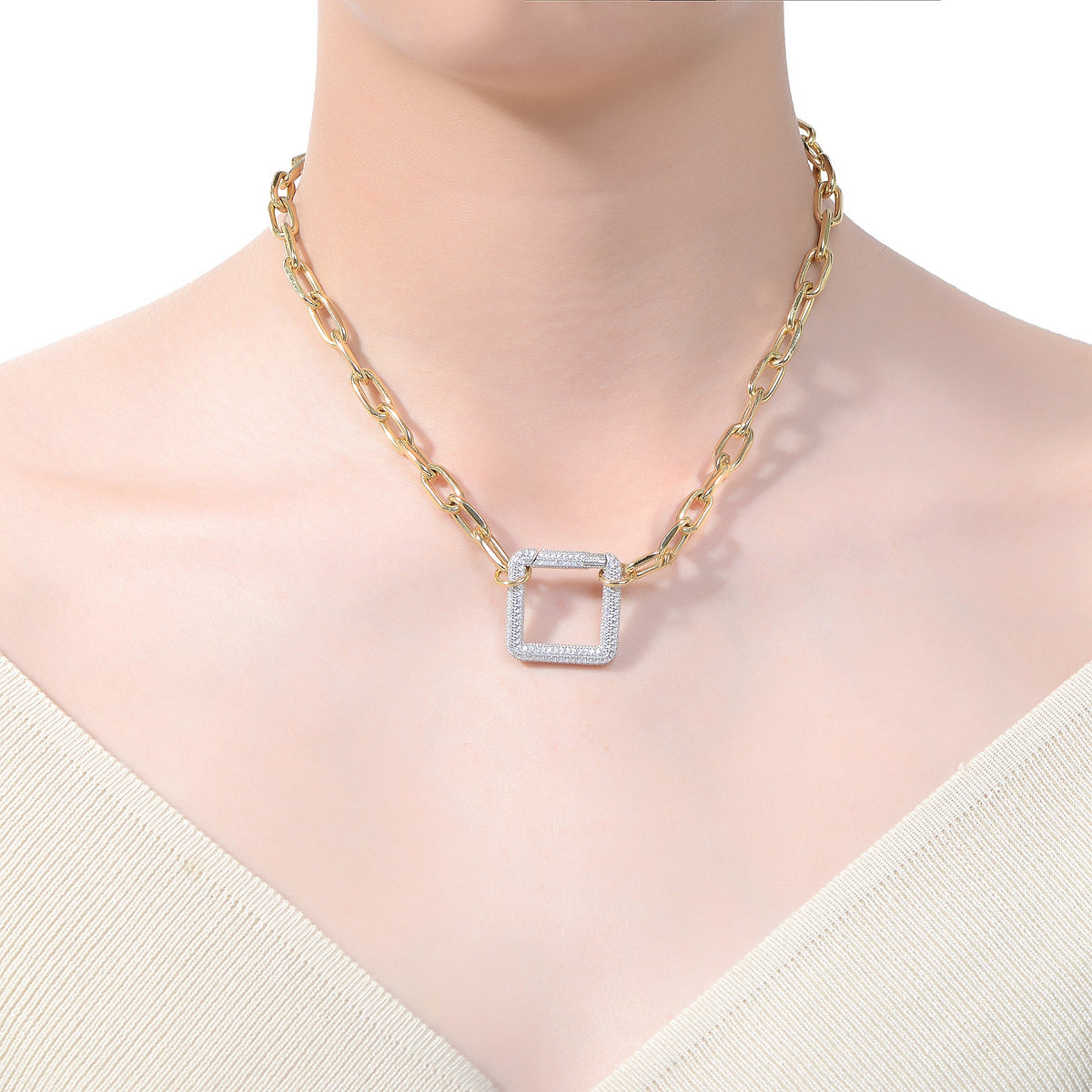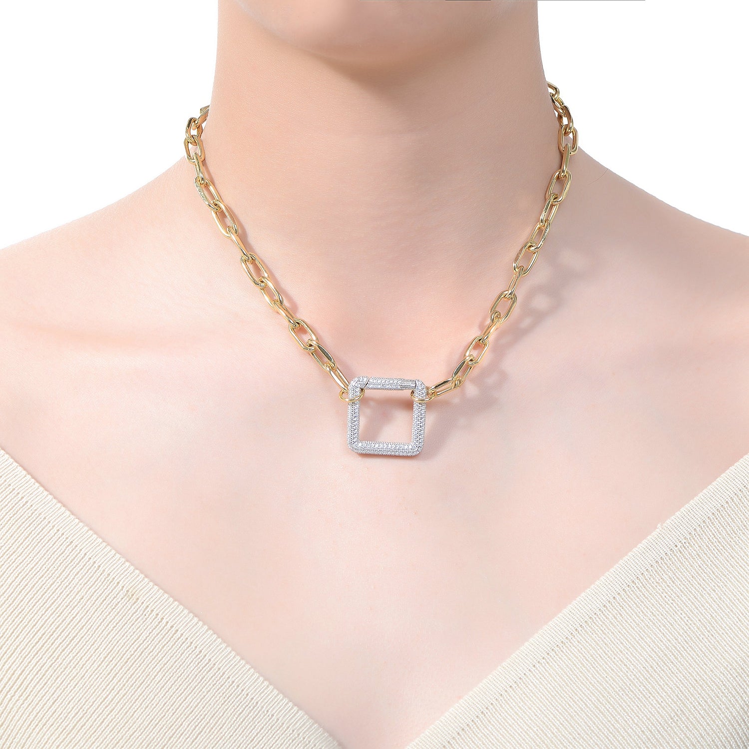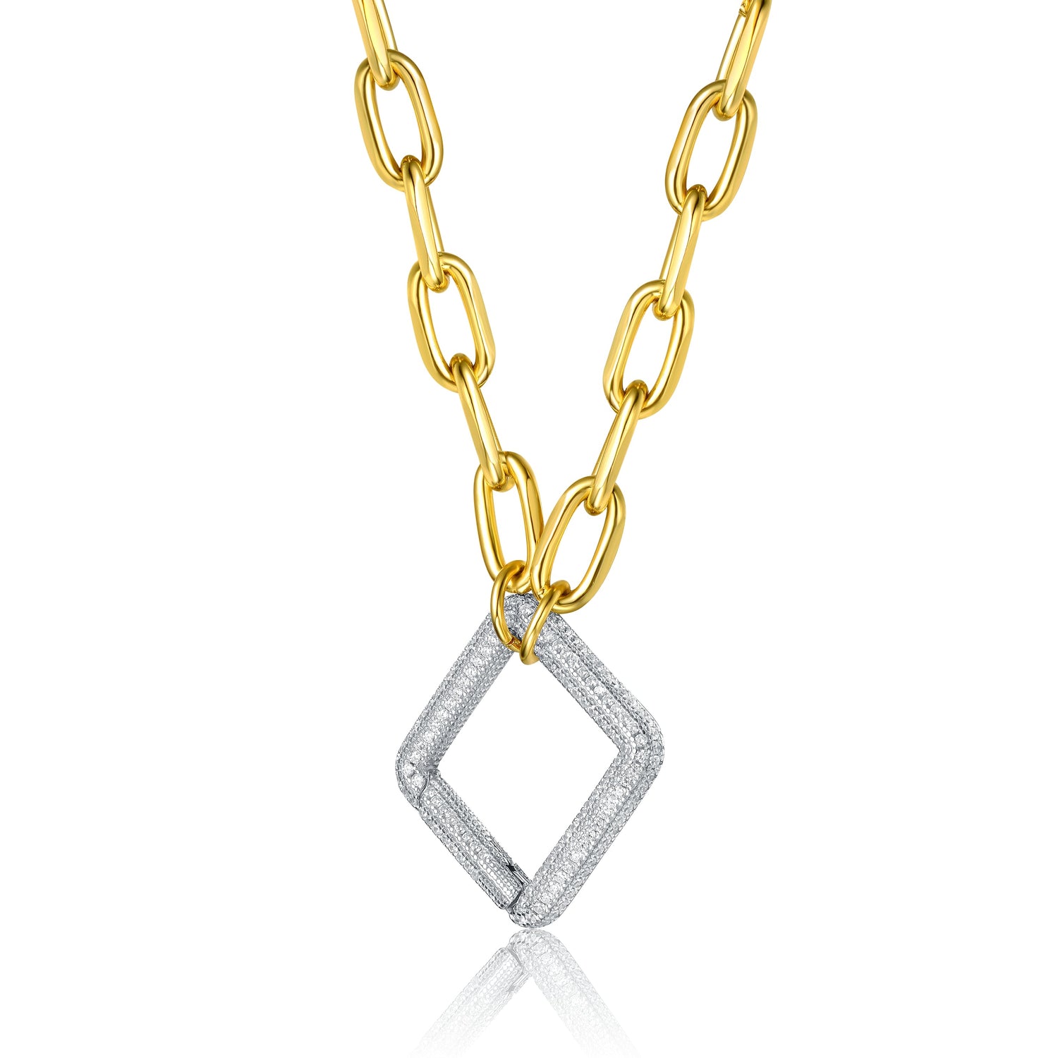 14k Gold-plated Elegant Chain With Glittering Diamonds Triangle Sterling Silver Pendant Necklace Cubic Zirconia