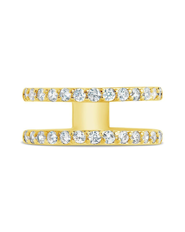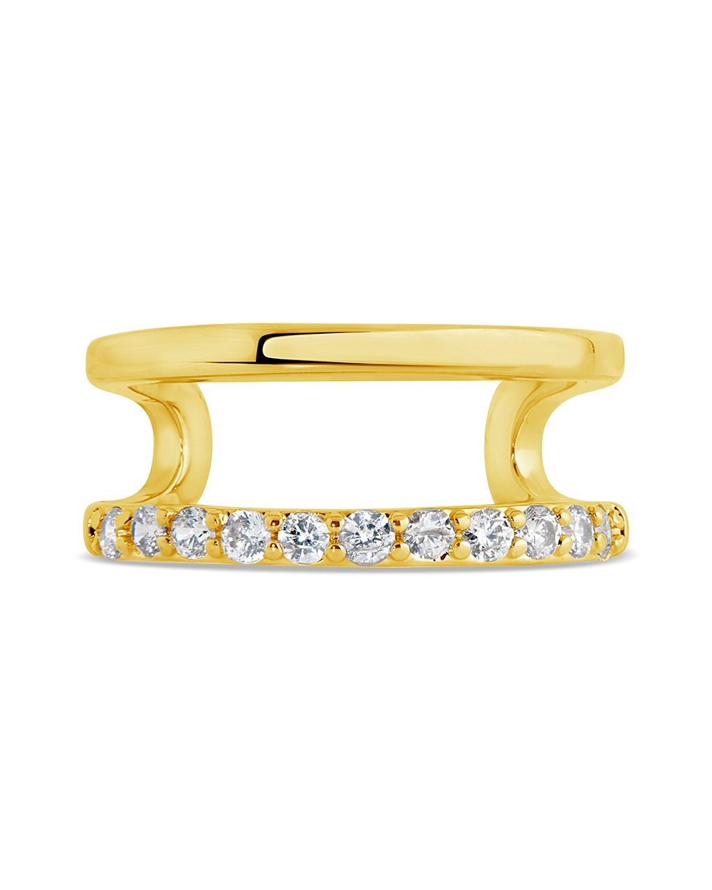 Crafted with 14K gold over brass and cubic zirconia stones. Ring widths: 9.8mm and 7.05mm. 1mm CZ stones. Midi ring size: 3. Lead and nickel-free.