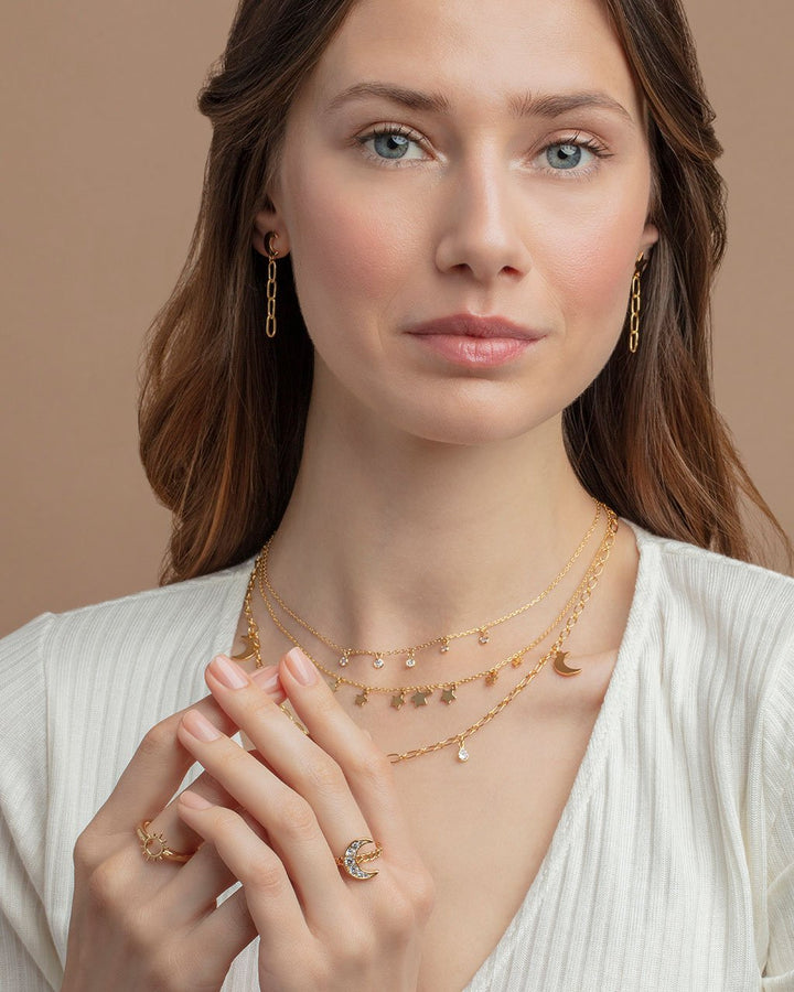Made from 14K gold or rhodium-plated brass, featuring a 3.5mm band and 12mm sun design. Lead and nickel free.