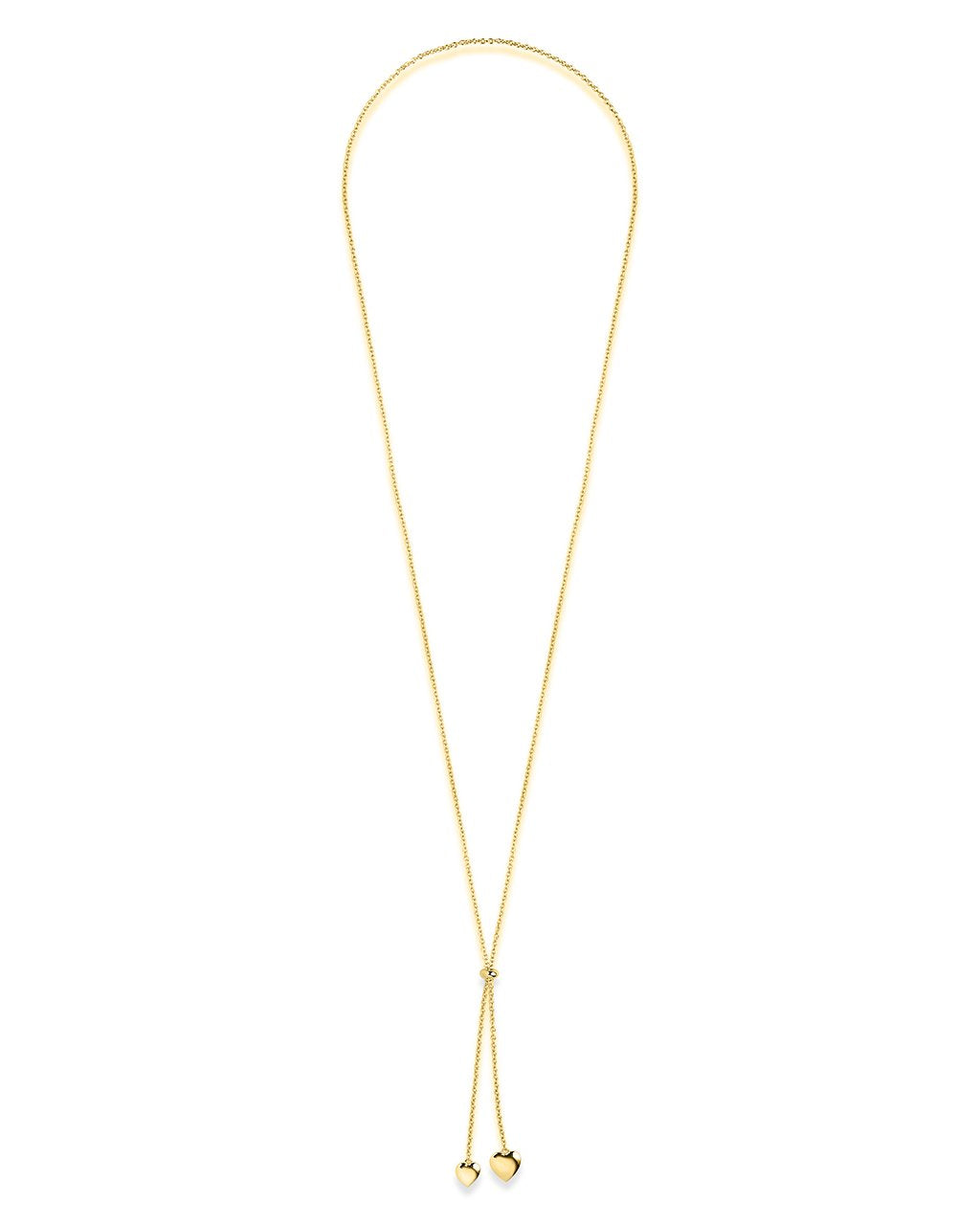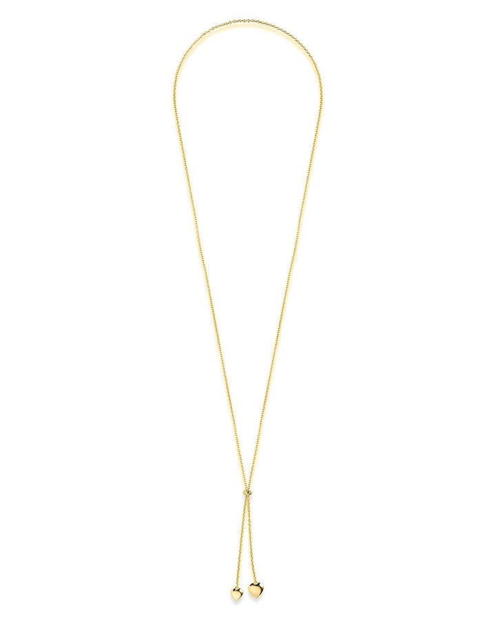 Crafted in 14K gold, 14K rose gold, or rhodium-plated brass. 15mm heart pendant. Adjustable 30-inch chain with lobster clasp. Lead and nickel-free.