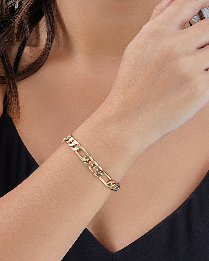 This Figaro Chain Bracelet by Sterling Forever is a striking and elegant addition to any jewelry collection. The Figaro chain design features alternating oval links, creating a unique and sophisticated look. Available in both gold and silver tones, this bracelet is perfect for stacking or wearing on its own, and it adds a polished touch to any outfit.