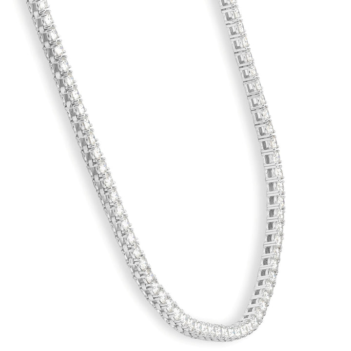 The Huge 23 Ct Moissanite Tennis Necklace in 14K White Gold by Pompeii3 is a show-stopping statement piece. Designed with round brilliant-cut moissanite stones, this high-polish tennis necklace radiates brilliance and elegance, making it a luxurious addition to any jewelry collection.