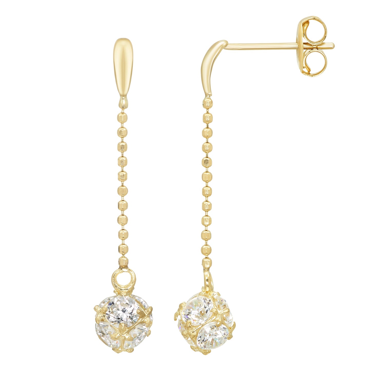 Made from 14K gold with cubic zirconia stones. Length: 1.5'. Polished finish with post backings.