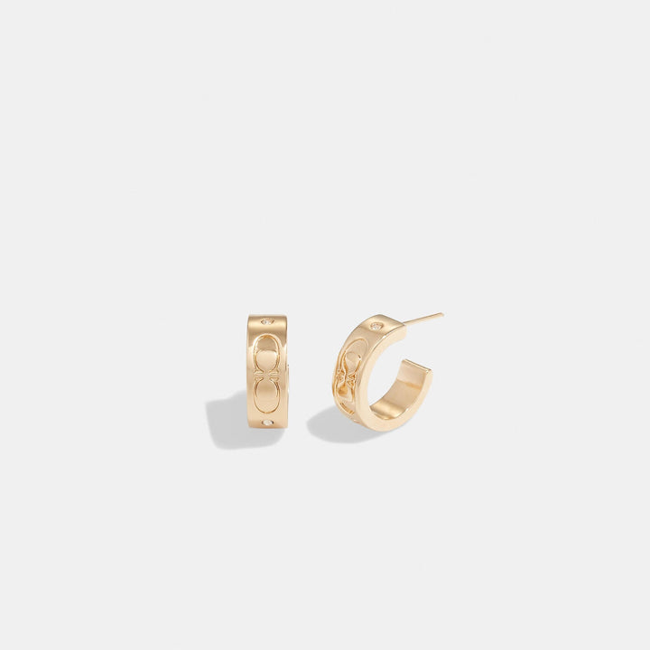 These Coach Signature Huggie Earrings are a chic and understated way to add a touch of elegance to any look. Plated in rose gold, the earrings feature the signature Coach logo, making them a statement of both luxury and sophistication. The hypoallergenic titanium post ensures a comfortable fit for sensitive ears. With their sleek, modern design, these earrings are perfect for everyday wear or as a gift for someone special.