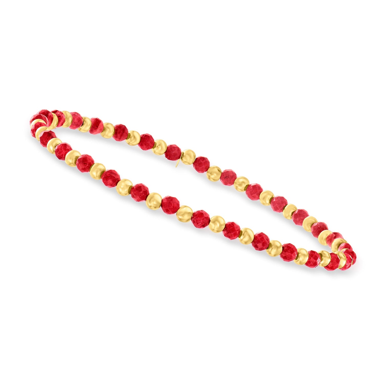 Made with 6.00 ct. t.w. round faceted rubies (heat-treated), 10kt yellow gold spacer beads. Stretch design fits approximately a 7-inch wrist.