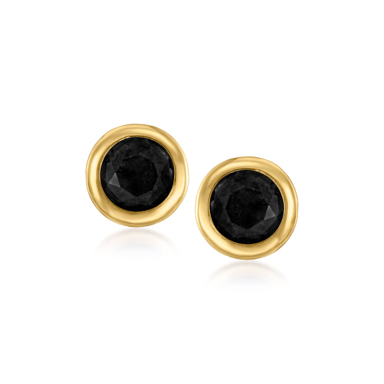Crafted in 10kt yellow gold with 4mm round-cut natural black onyx (dyed and heat-treated). Polished finish with post/clutch backings for secure wear.
