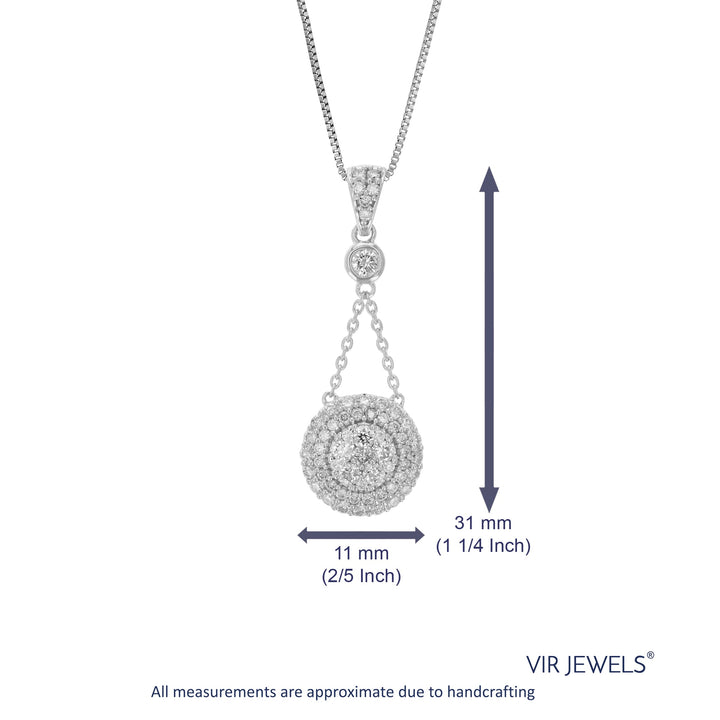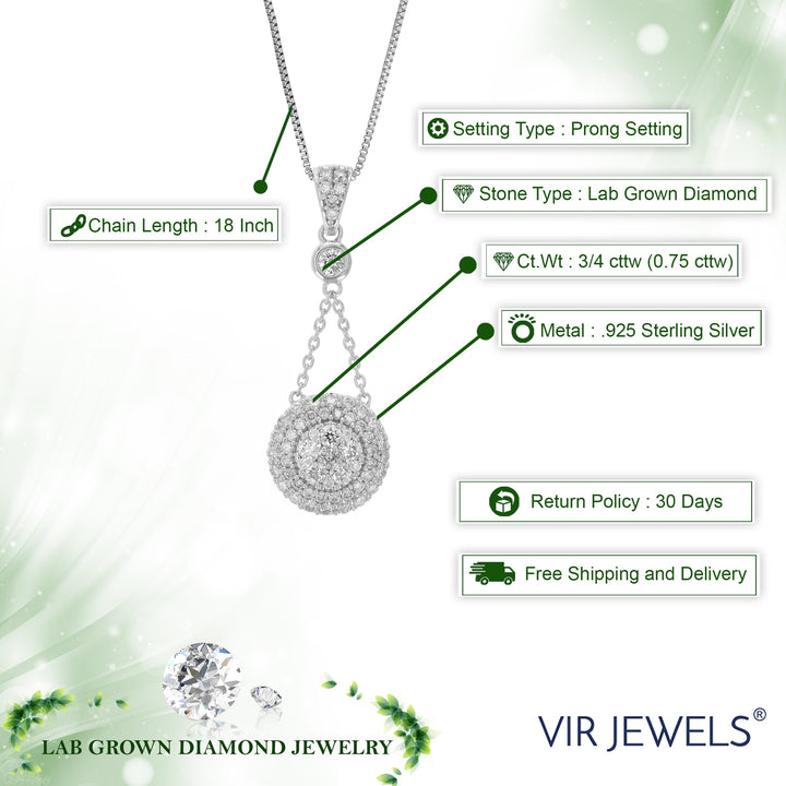 This 3/4 cttw Lab Grown Diamond Pendant Necklace by Vir Jewels is an exceptional piece, featuring 58 round-cut diamonds that sparkle with every movement. The diamonds are expertly set in a prong setting, allowing their brilliance to shine through. This necklace is crafted in .925 sterling silver, a durable and shiny metal that maintains its allure for years. With its elegant design and timeless appeal, this pendant is a perfect choice for any occasion or as a meaningful gift.