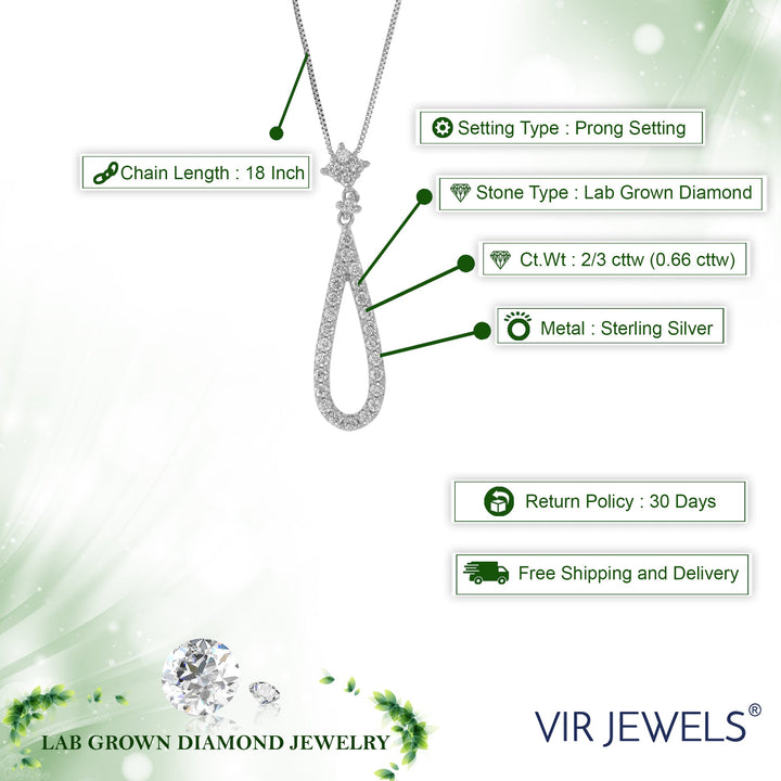 This 2/3 cttw Lab Grown Diamond Pendant Necklace by Vir Jewels is a timeless addition to any jewelry collection. Suspended from an 18-inch chain, the pendant showcases 30 dazzling lab-grown diamonds that radiate exceptional brilliance. Crafted in sterling silver, this elegant necklace is a symbol of refined luxury and makes a stunning gift or personal keepsake.