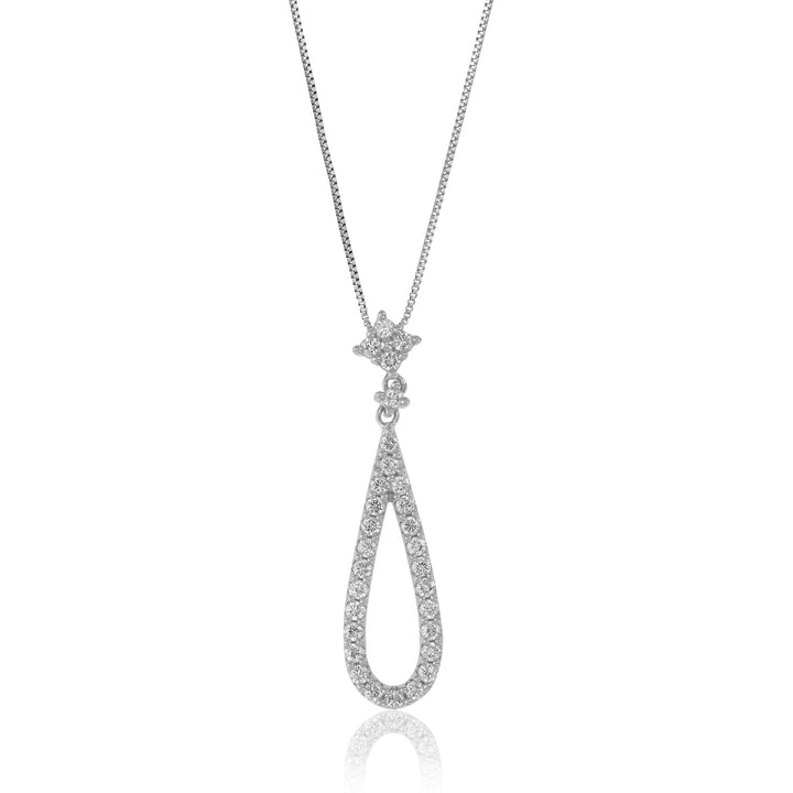 Crafted in .925 sterling silver with 2/3 cttw round-cut lab-grown diamonds. Diamonds are H-I color, SI1-SI2 clarity. Features a prong setting with 30 diamonds. Pendant dimensions: Width: 9mm (1/3 inch), Length: 35mm (1 1/4 inch). Chain length: 18 inches.
