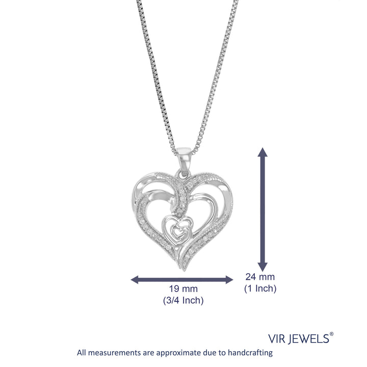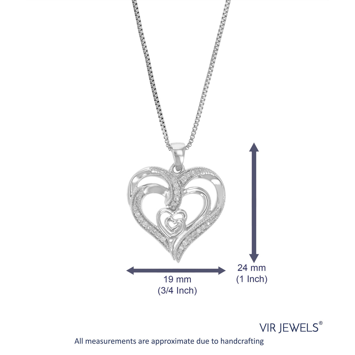 1/10 cttw Lab Grown Round Diamond Heart Pendant Necklace .925 Sterling Silver For Women 3/4 Inch With 18 Inch Chain