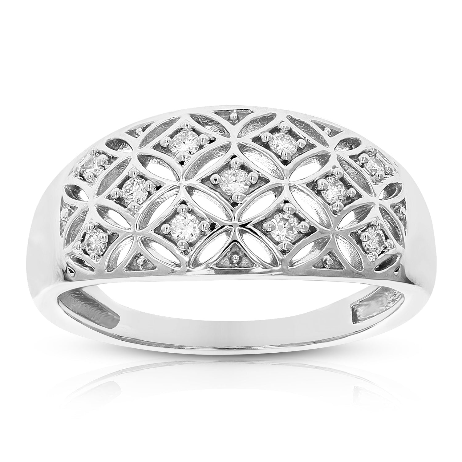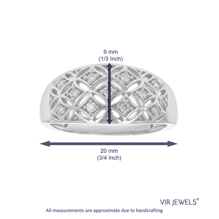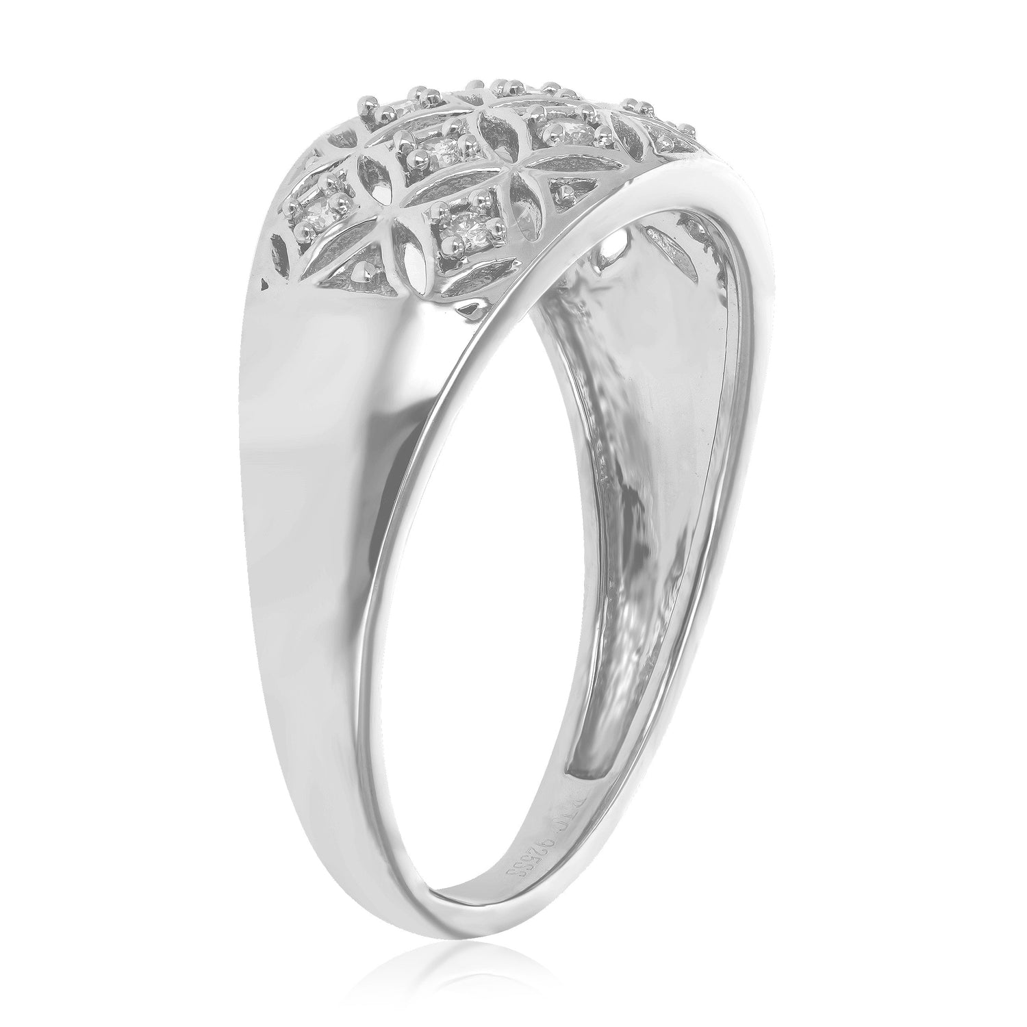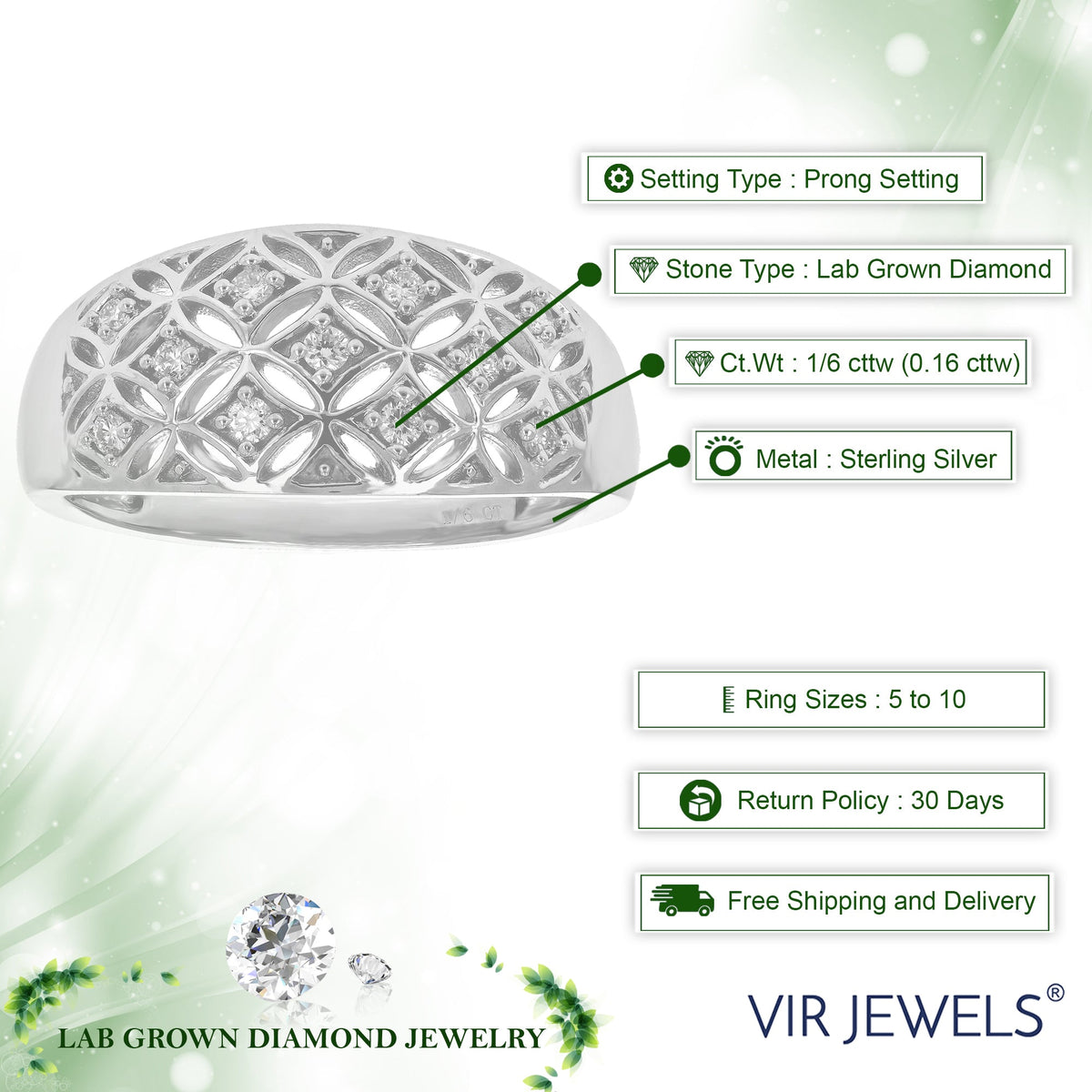 Crafted in .925 sterling silver with 1/6 cttw round-cut lab-grown diamonds. Diamonds are H-I color, SI1-SI2 clarity. Features a prong setting with 11 diamonds. Ring dimensions: Width: 9mm (1/3 inch), Length: 17mm (2/3 inch).