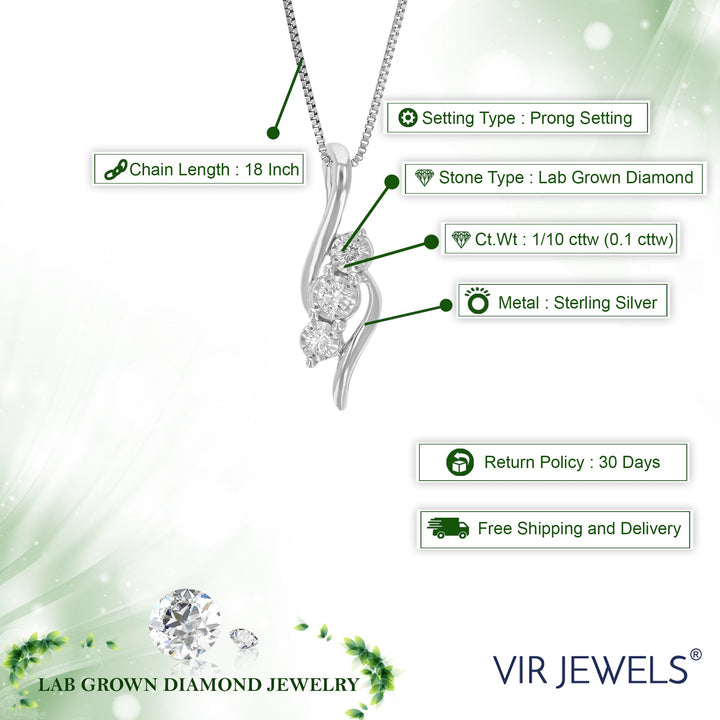 1/10 cttw Lab Grown Diamond Pendant Necklace .925 Sterling Silver For Women 1/5 Inch With 18 Inch Chain