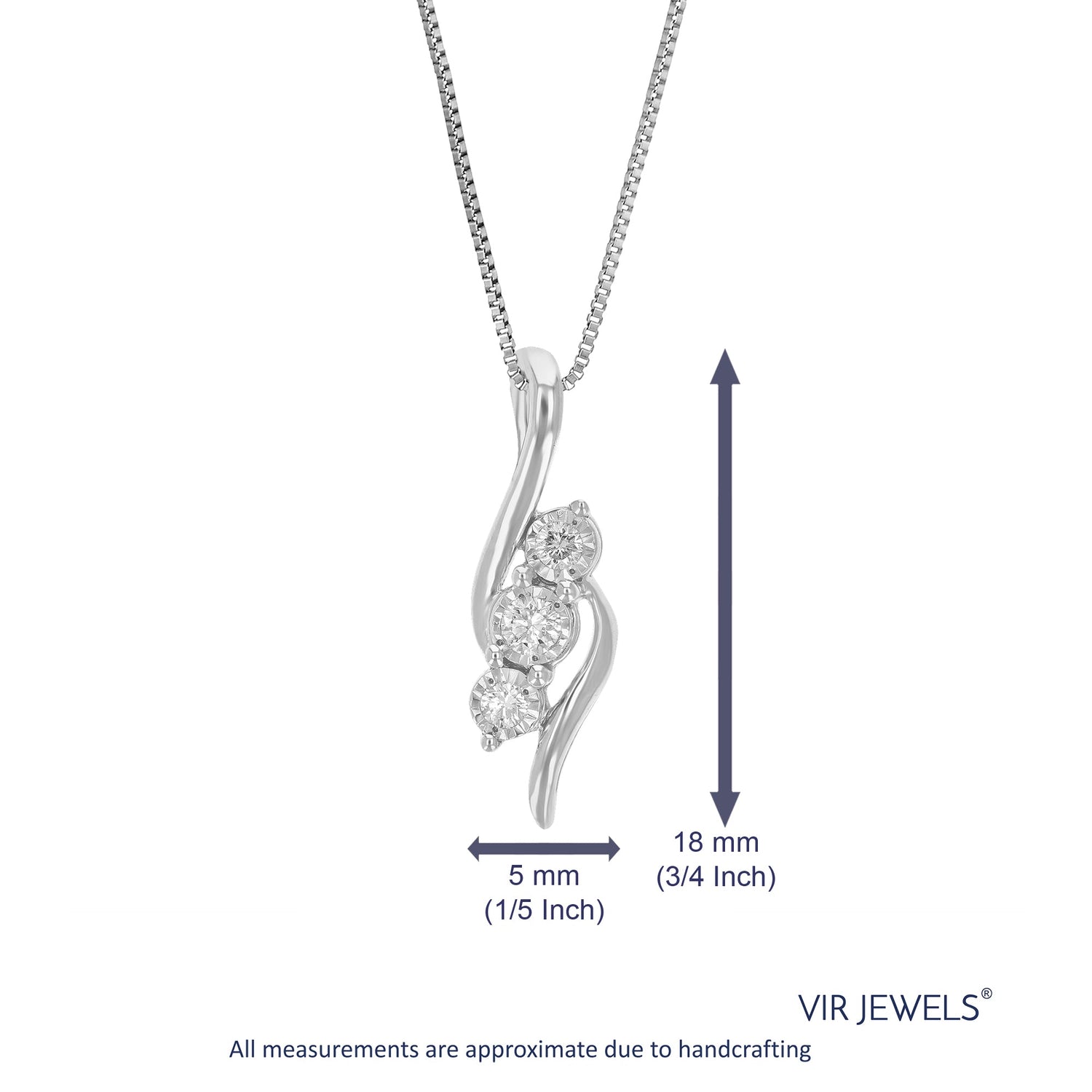 This 1/10 cttw Lab Grown Diamond Pendant Necklace by Vir Jewels is a striking and sophisticated piece. Crafted from .925 sterling silver, this pendant features 3 round-cut diamonds that sparkle brilliantly in a secure prong setting. The timeless design makes it perfect for layering with other necklaces or wearing solo to add a refined touch to any outfit. This piece is ideal for gifting, whether for an anniversary, birthday, or a special occasion.