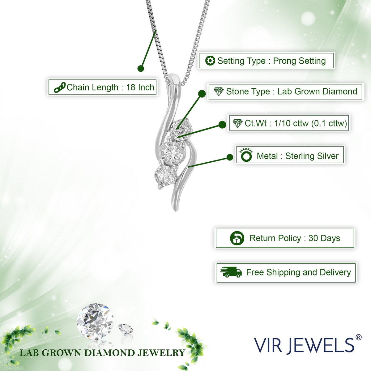 .925 sterling silver pendant, 1/10 cttw lab-grown diamonds (3 stones), round-cut diamonds, H-I color, SI1-SI2 clarity, prong setting. Pendant dimensions: Width - 5mm (1/5 inch), Length - 17mm (2/3 inch). Includes 18-inch chain.