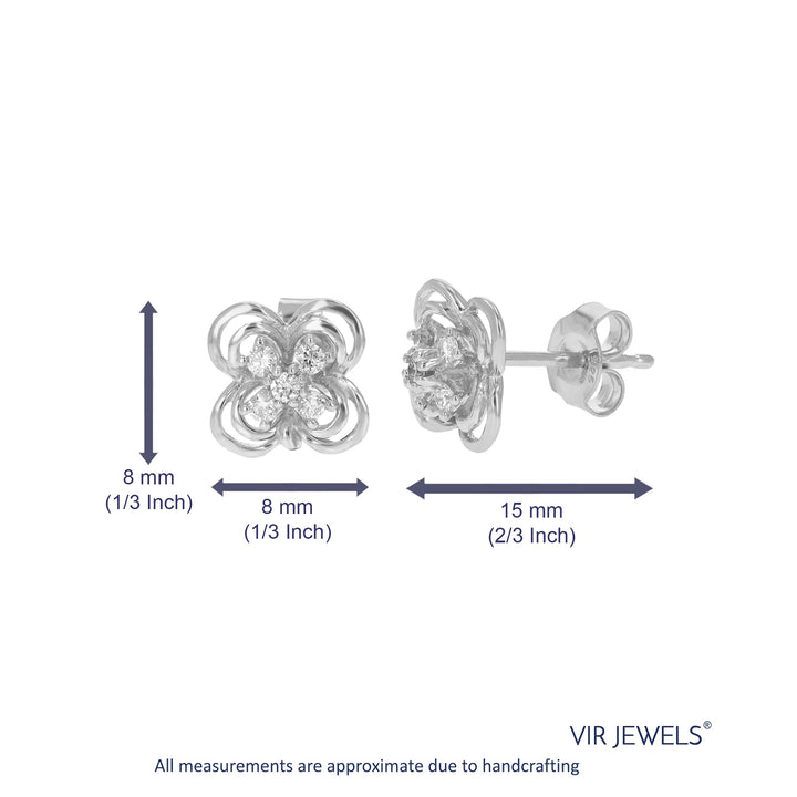 These Floral Design Round Lab Grown Diamond Stud Earrings by Vir Jewels bring a delicate, nature-inspired charm to your collection. The floral motif, crafted with 10 sparkling diamonds, is beautifully set in sterling silver, creating a refined and radiant look. Perfect for adding a graceful touch to any outfit.