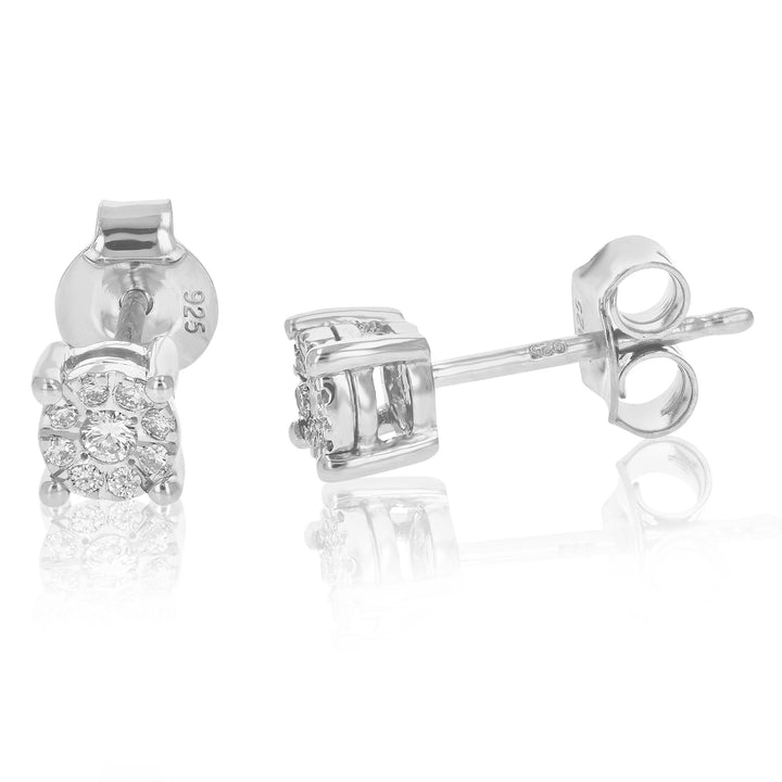 Crafted in .925 sterling silver with 18 round-cut lab-grown diamonds totaling 1/8 cttw. Prong-set for maximum sparkle. Diamond color: H-I; clarity: SI1-SI2. Stud width: 5mm (1/5 inch), height: 5mm (1/5 inch). April birthstone.
