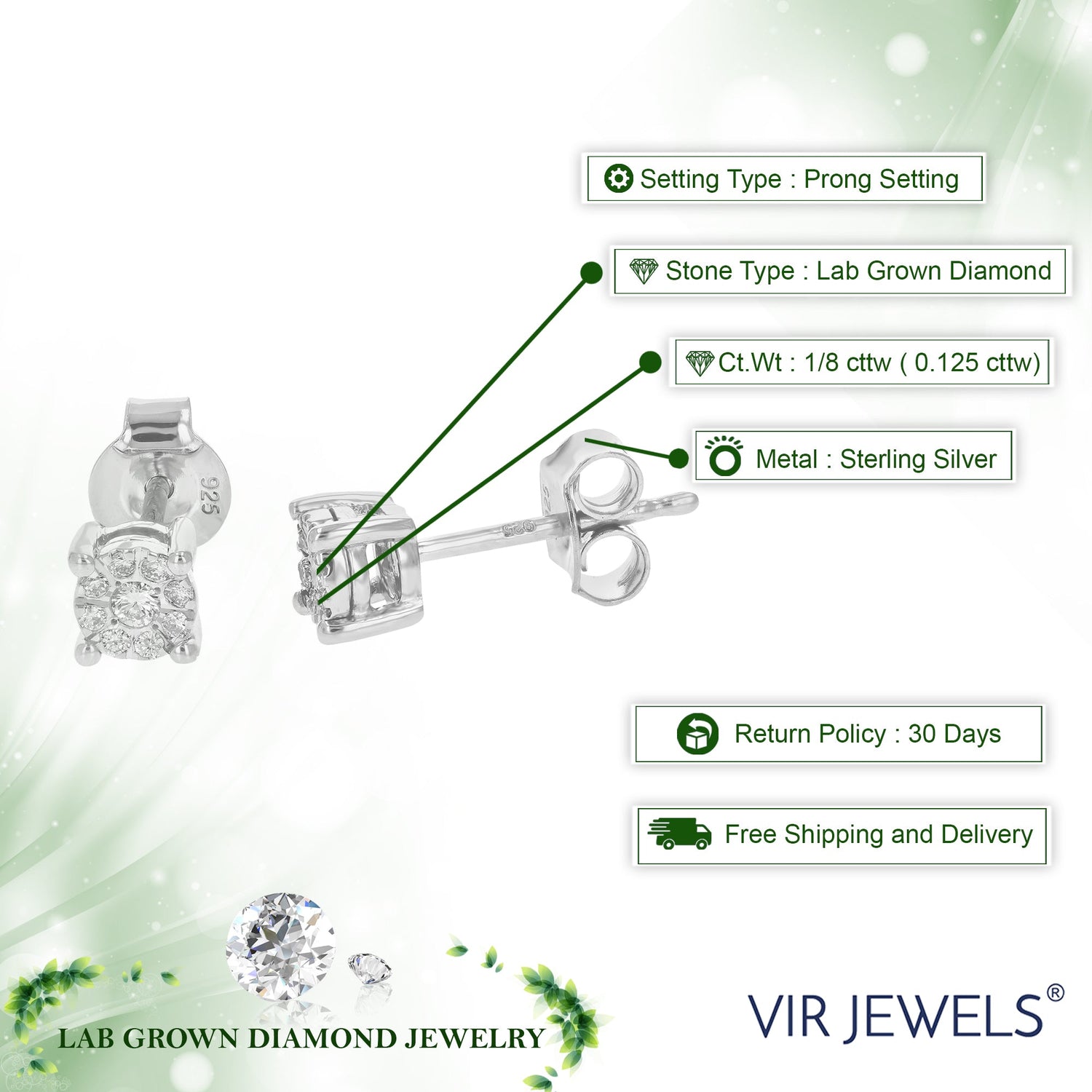 1/8 cttw Round Lab Grown Diamond Stud Earrings in .925 Sterling Silver Prong Settings