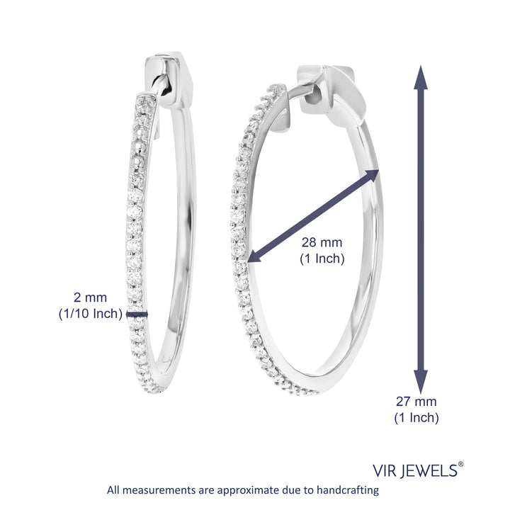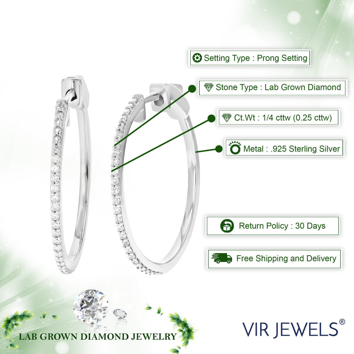 1/4 cttw Round Lab Grown Diamond Hoop Earrings .925 Sterling Silver Prong Set 1 Inch Size