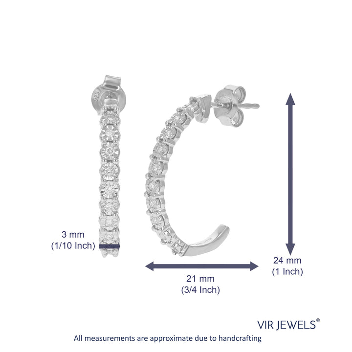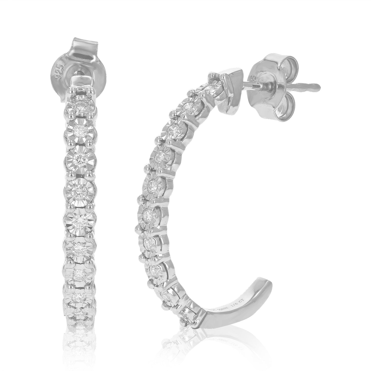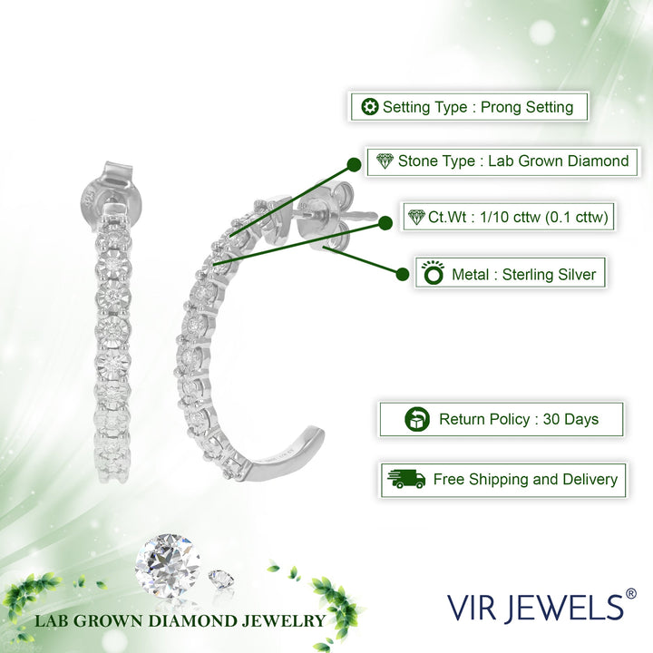 Crafted in .925 sterling silver with 1/6 cttw round-cut lab-grown diamonds. Diamonds are H-I color, SI1-SI2 clarity. Features a prong setting with 20 diamonds. Earring dimensions: Width: 3mm (1/10 inch), Length: 21mm (3/4 inch).
