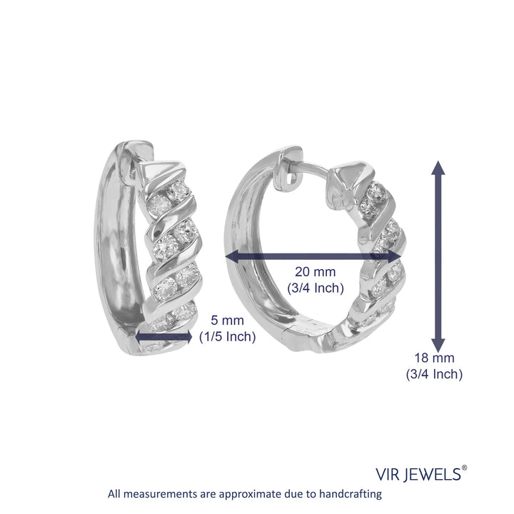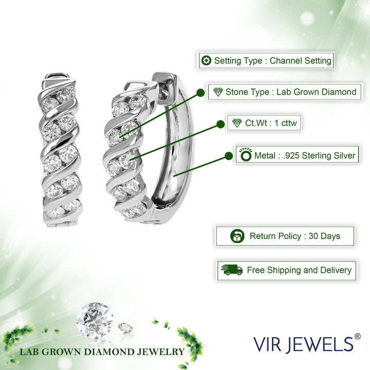 1 cttw Round Lab Grown Diamond Hoop Earrings .925 Sterling Silver Channel Set 3/4 Inch