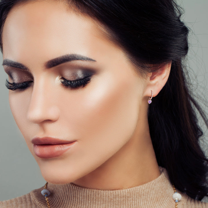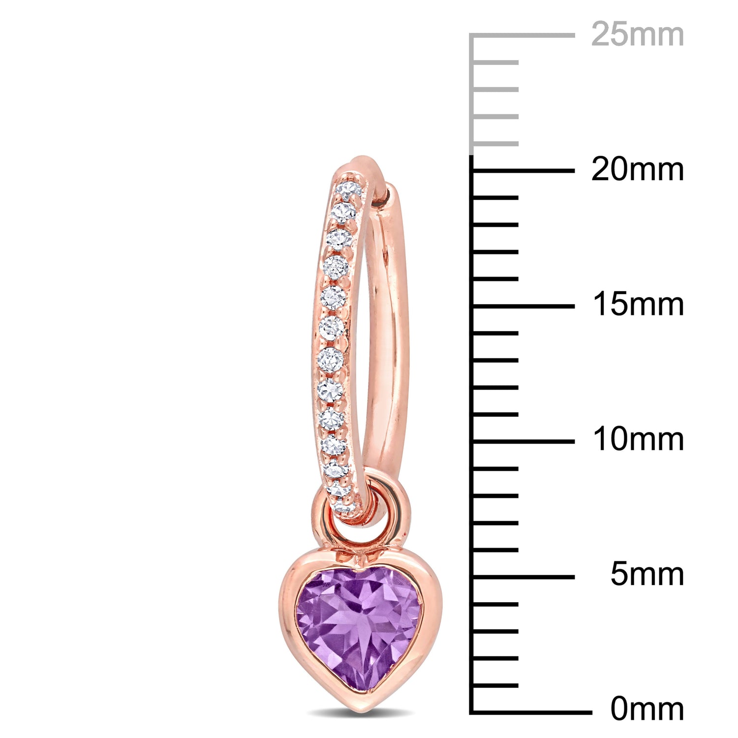 Mimi & Max 4/5 CT TGW Amethyst and 1/8 CT TDW Diamond Heart Huggie Earrings in 10k Rose Gold