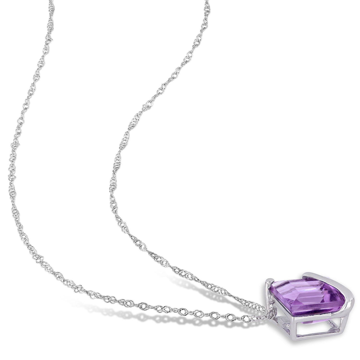 Mimi & Max Amethyst Square Pendant with Chain in 10k White Gold