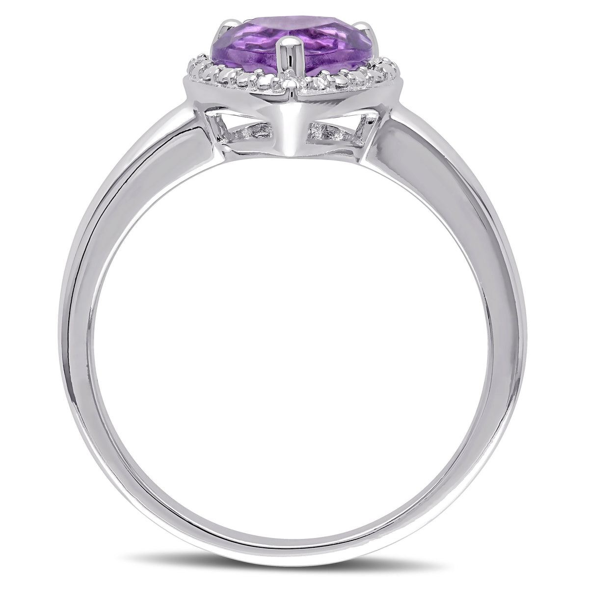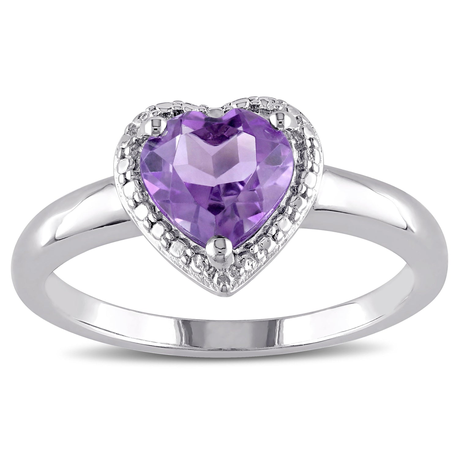 Crafted in sterling silver with a 1-carat heart-cut amethyst stone. Ring setting dimensions: 9.7 mm wide x 9.8 mm long x 6.1 mm high. Band dimensions: 1.7 mm wide. High-polish finish. Metal weight: 2.8 grams.