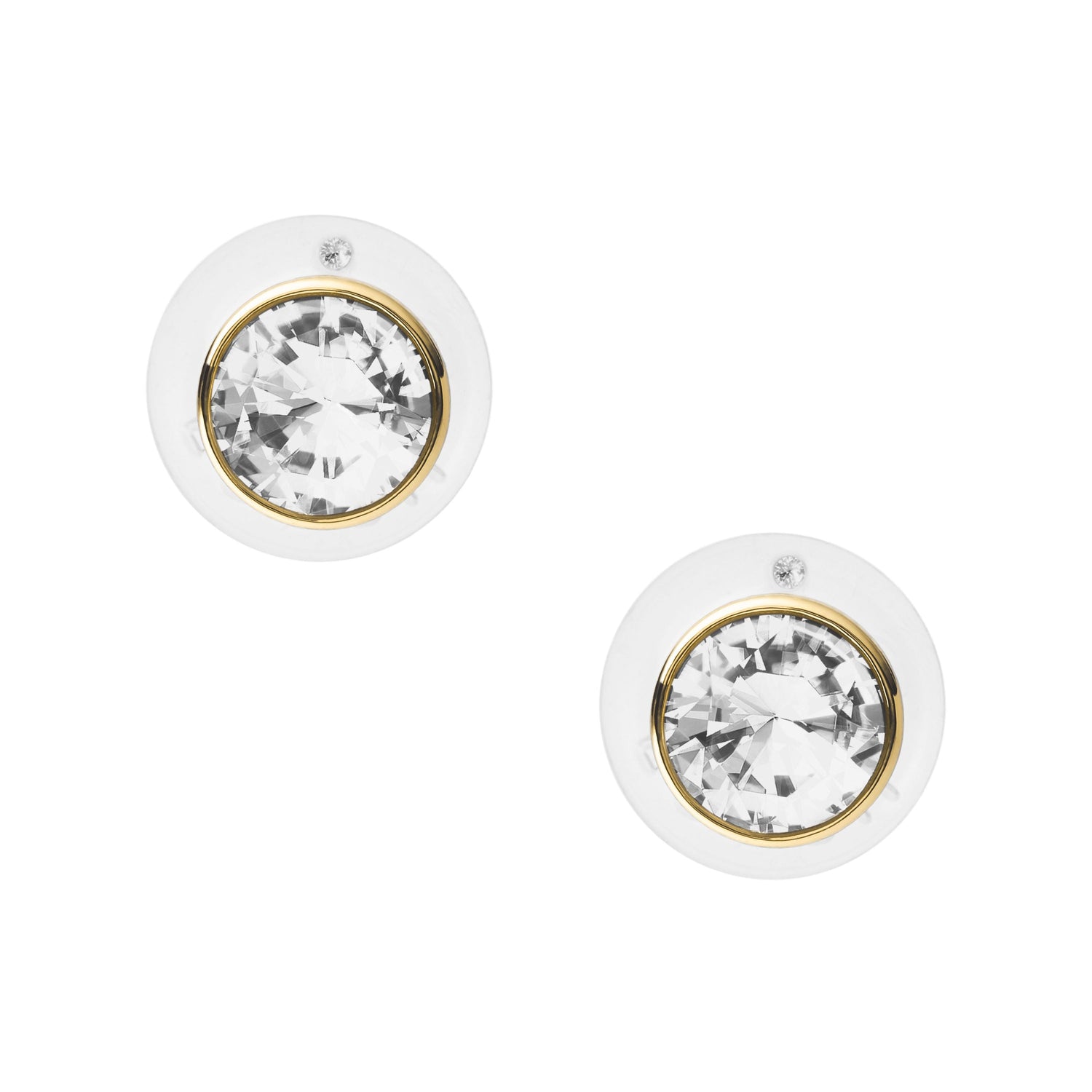 Brass with clear crystal stones. Gold-tone finish. Post closures.