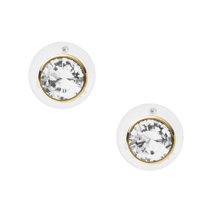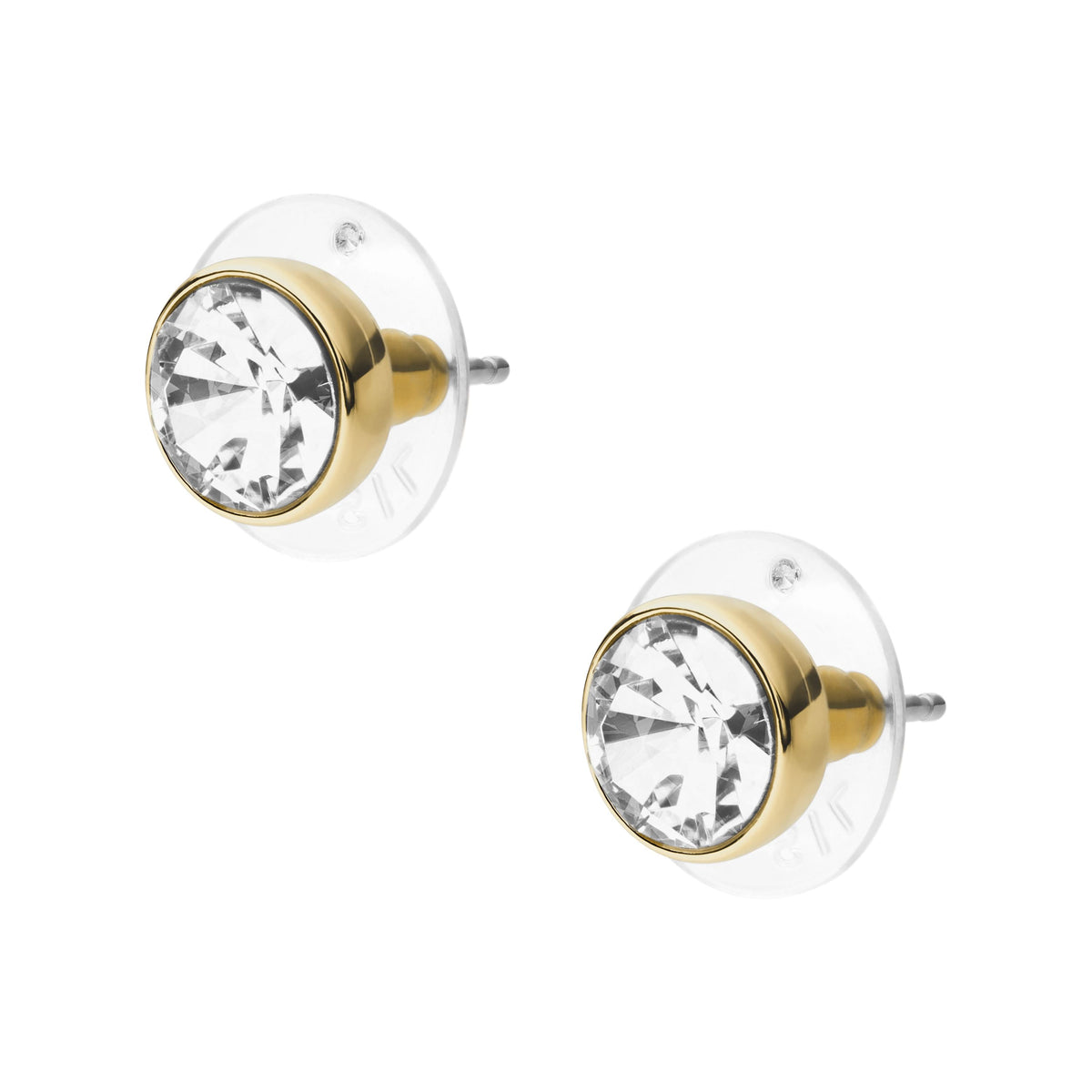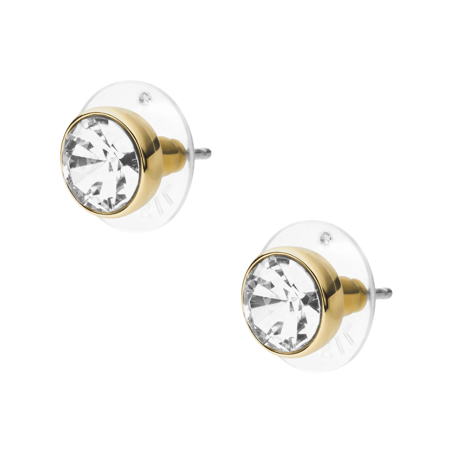 These Fossil Women's Gold Tone Brass Stud Earrings by Fossil are the epitome of simplicity and elegance. Featuring clear crystal stones set in gold-tone brass, these earrings are polished to perfection for a subtle shine. Secured with post closures, they’re ideal for everyday wear or as a classy addition to any outfit.