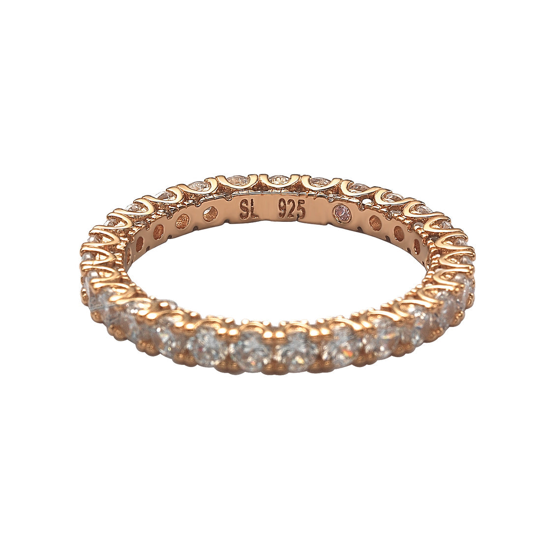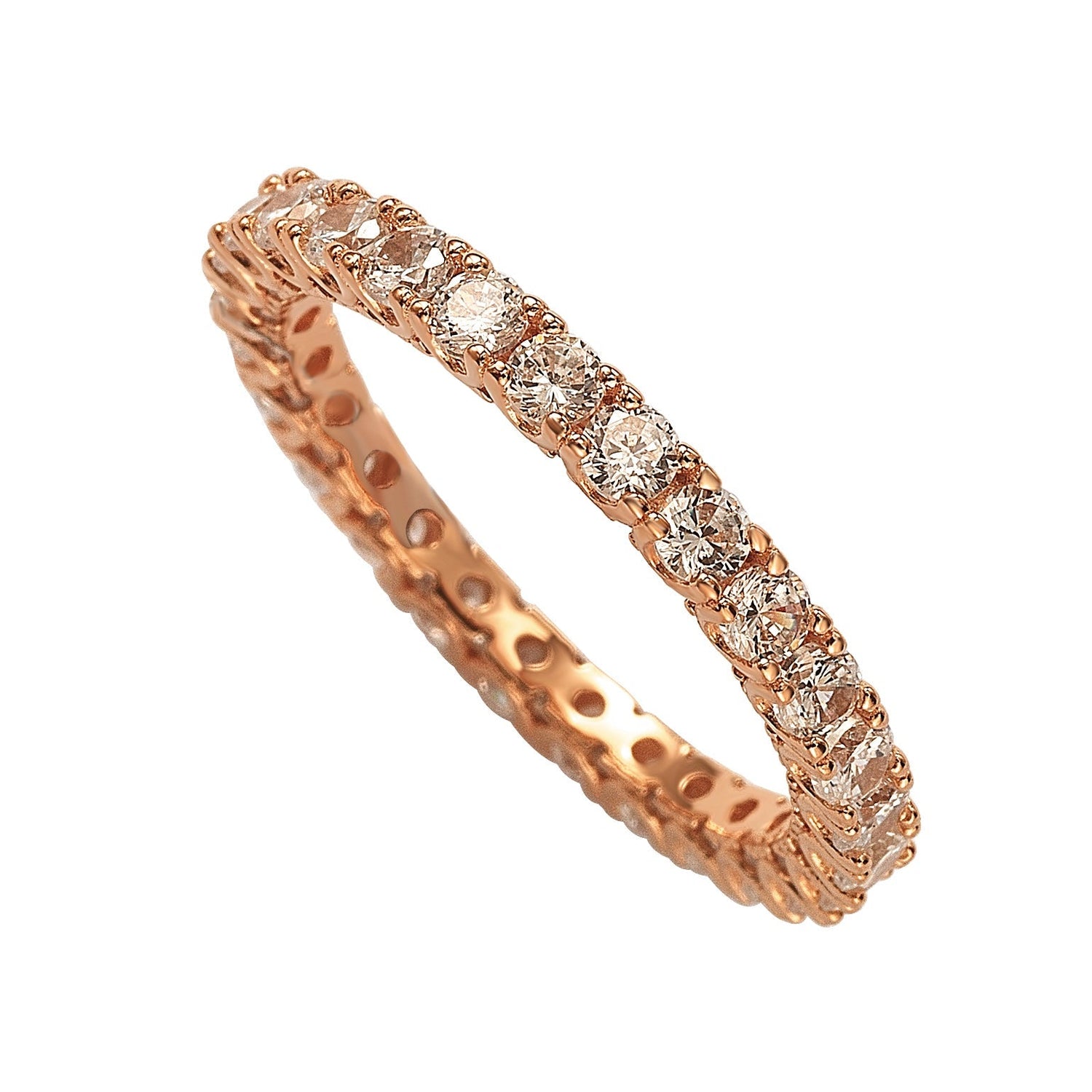 Suzy Levian Rose Sterling Silver Cubic Zirconia Pave U Shape Setting Eternity Band