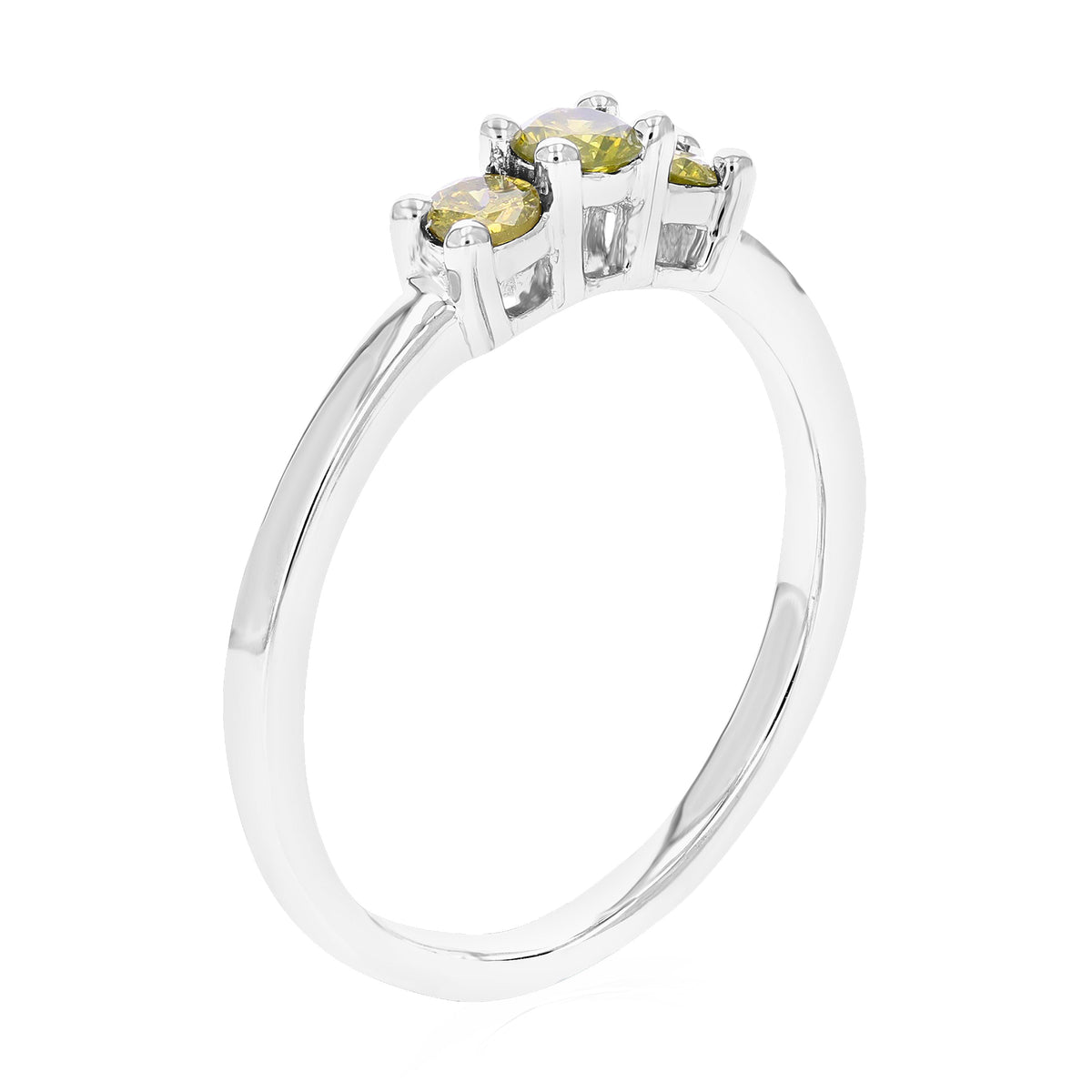 1/3 cttw 3 Stone Round Yellow Diamond Engagement Ring .925 Sterling Silver Prong Set
