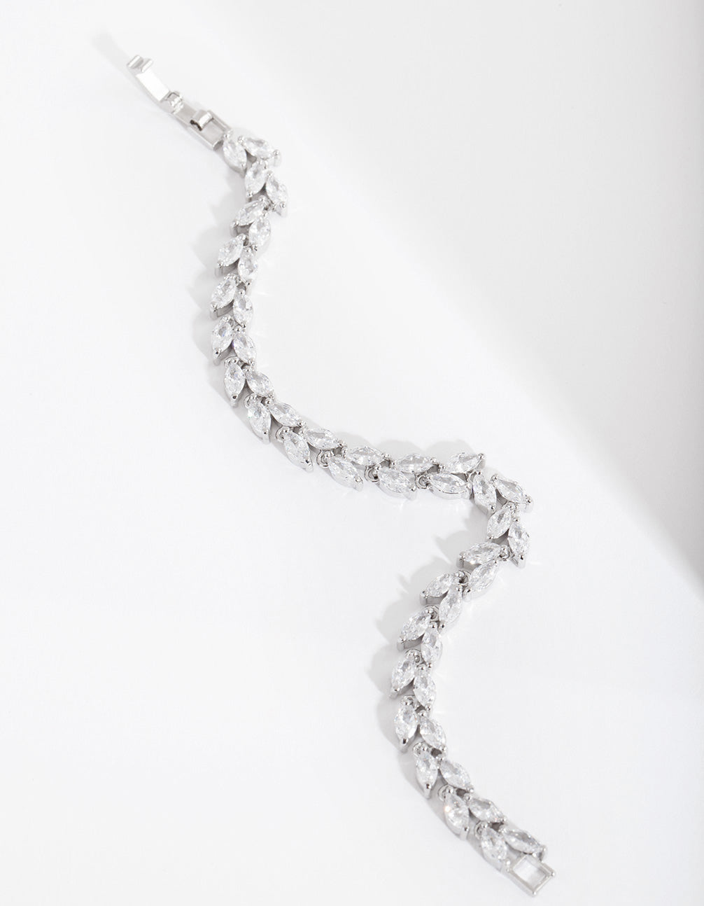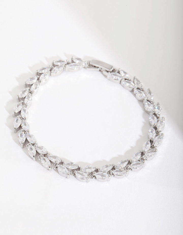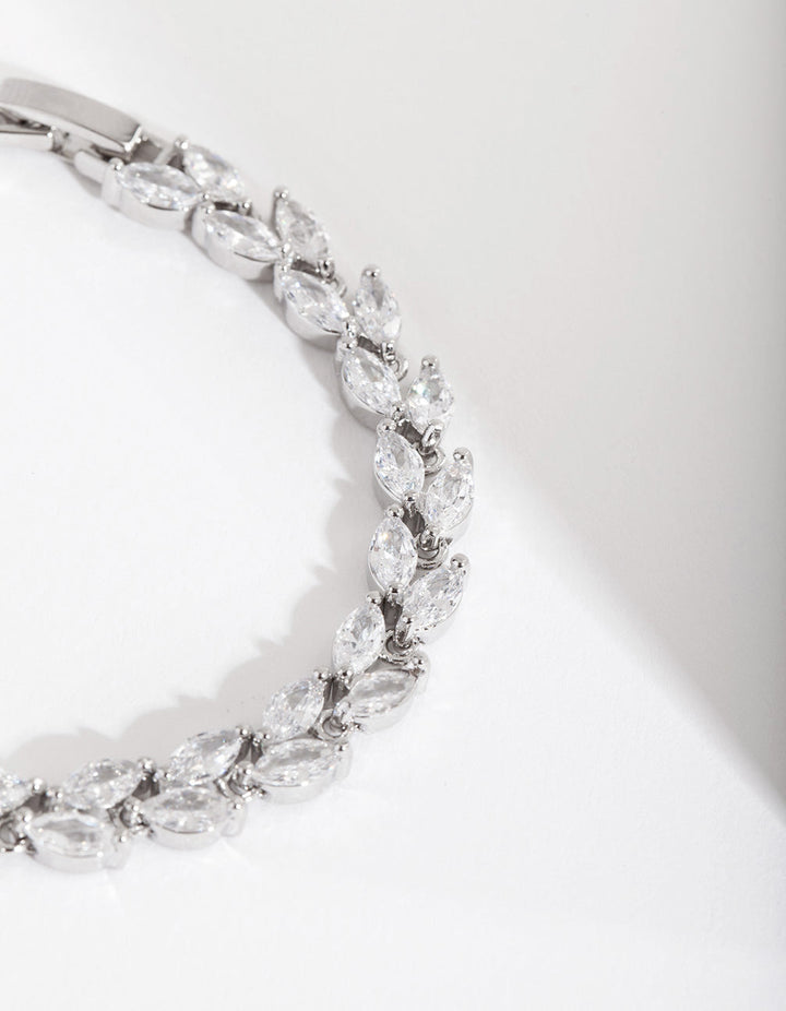 Made from rhodium-plated metal with diamond simulants. Length: 18cm. Weight: 13g.
