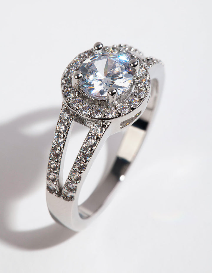 This Silver Plated Cubic Zirconia Halo Ring by Lovisa features a perfect-cut cubic zirconia, designed to mimic the brilliance of a diamond. The double-band design adds a modern touch, making it a stunning and versatile piece for any jewelry collection.