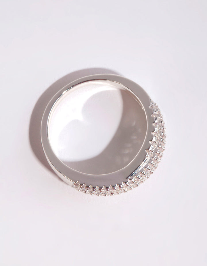 Silver Plated Cubic Zirconia Crossover Baguette Ring
