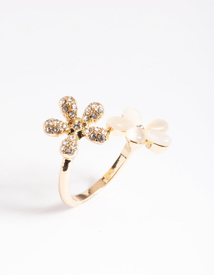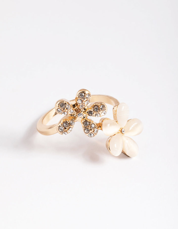 Gold Diamante and Cateye Flower Ring