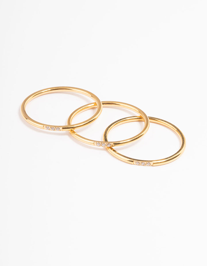 Gold Plated Surgical Steel Thin 3 Band Cubic Zirconia Ring