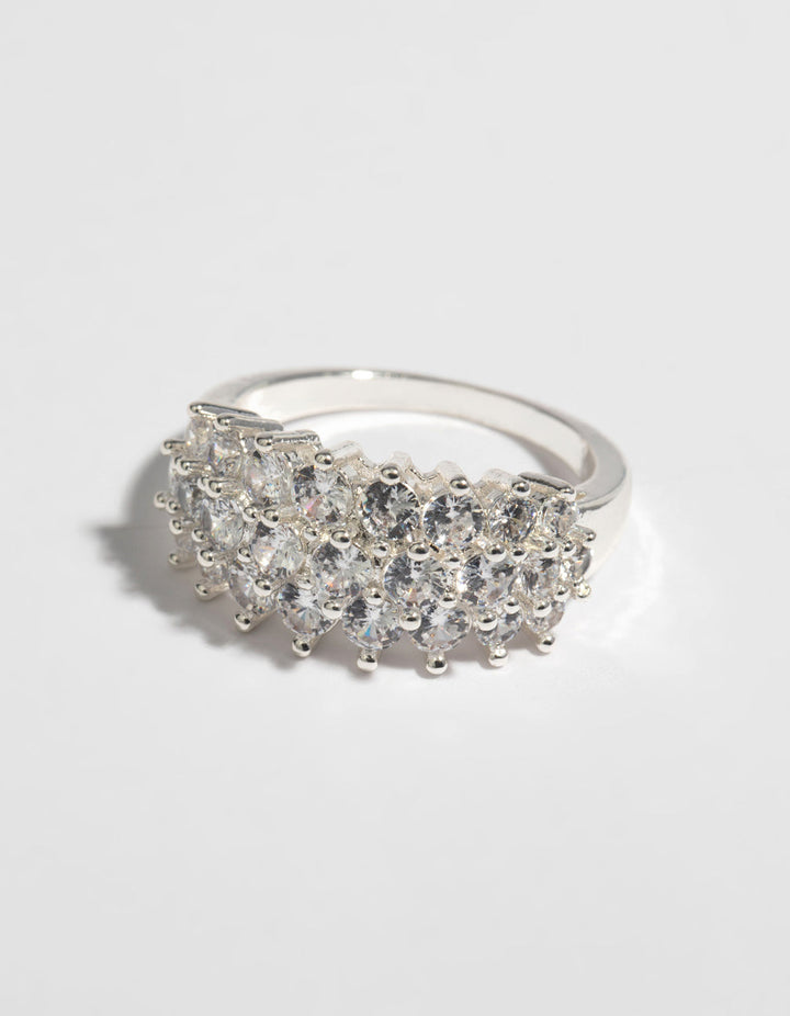 Silver Cubic Zirconia Cluster Ring