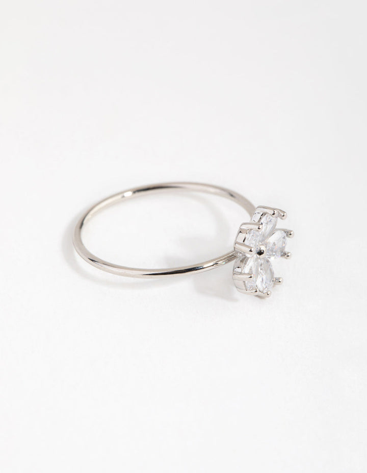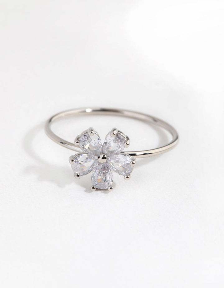 Rhodium Cubic Zirconia Daisy Diamante Ring